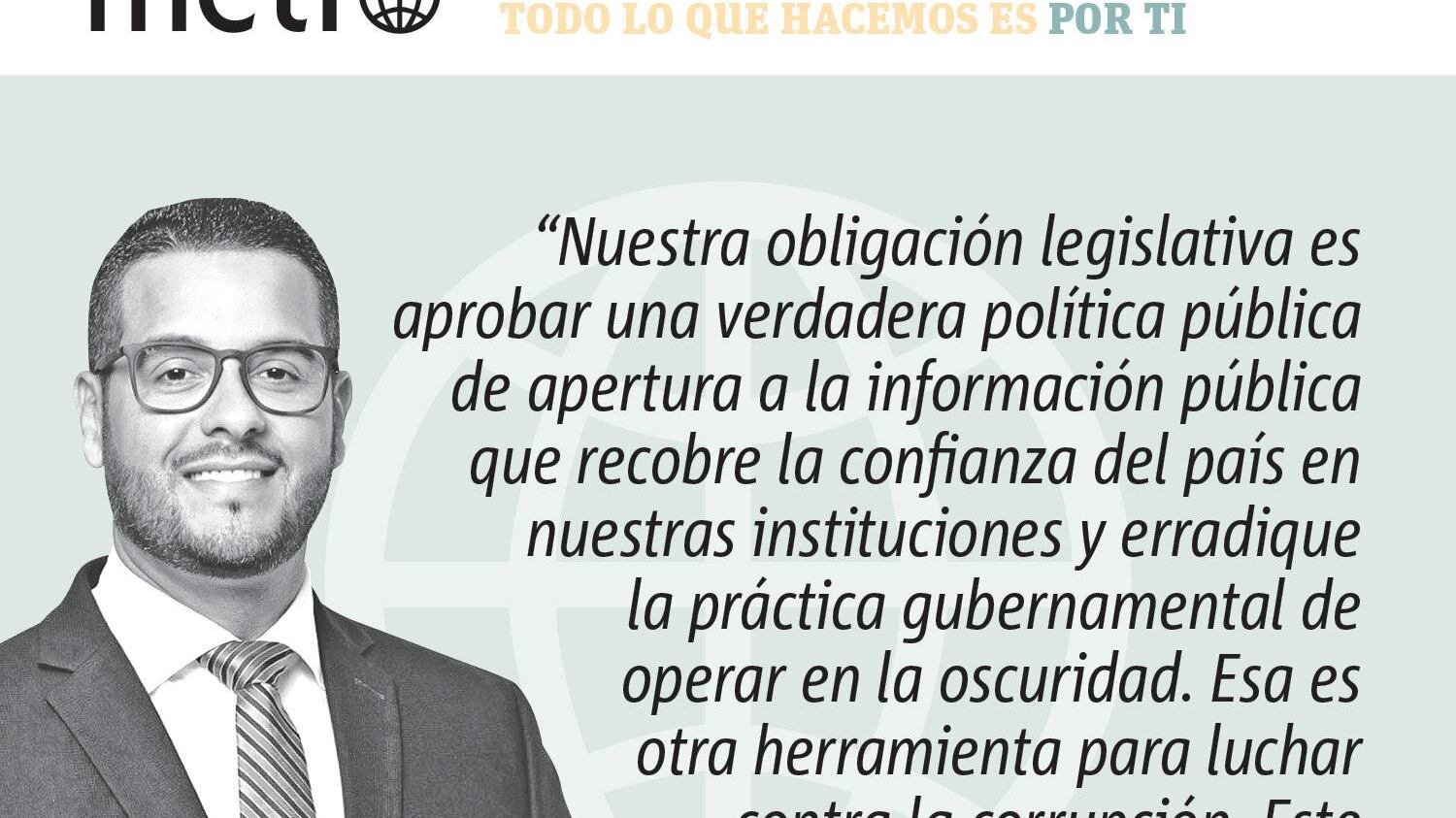 Nuestra obligación legislativa es aprobar una verdadera política pública de apertura a la información pública que recobre la confianza del país en nuestras instituciones y erradique la práctica gubernamental de operar en la oscuridad. Esa es otra herramienta para luchar contra la corrupción. Este debe ser nuestro único norte.