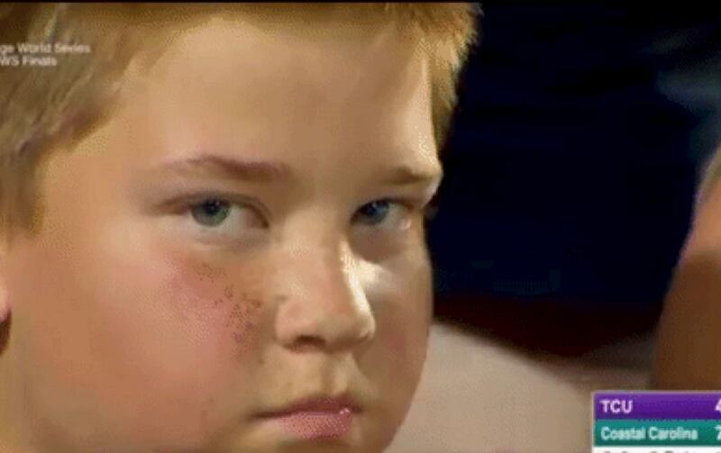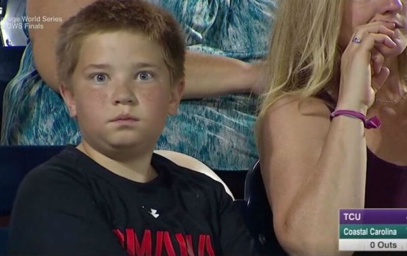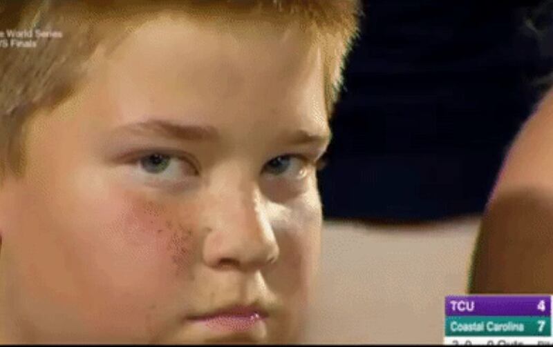 Durante las semifinales del torneo de NCAA División I entre Texas Christian University y Coastal Carolina, por unos instantes el protagonista se encontró en las tribunas y no en el diamante.