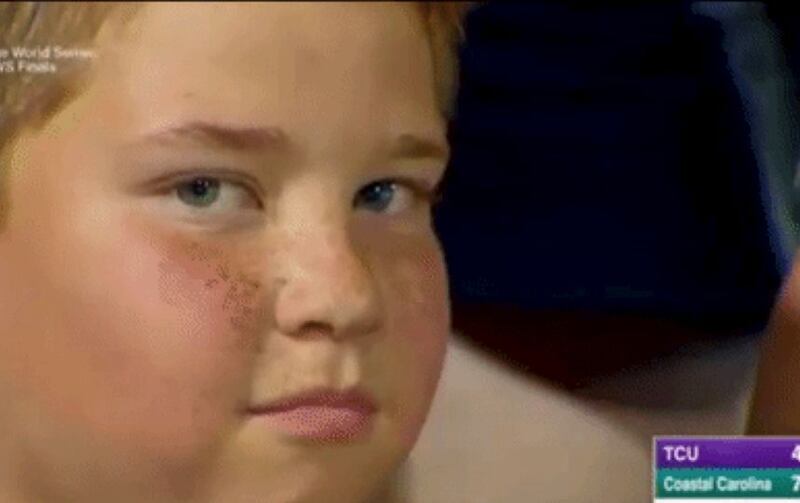 Solo con miradas, movimientos de hombros y pequeñas sonrisas logró hacer reír a los comentaristas del partido que desviaron su atención por completo al niño.