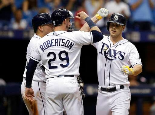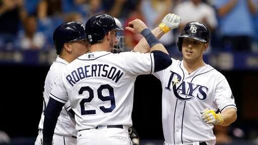 Corey Dickerson sacudió un par de jonrones y los Rays de Tampa Bay enlazaron una cuarta victoria seguida, su mejor racha de la campaña, al vencer el sábado 9-5 a los Yanquis de Nueva York.