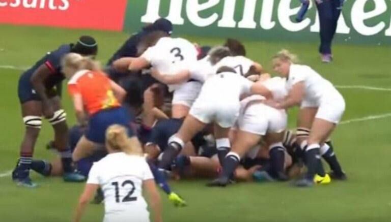 Durante un partido de rugby, una de las jugadoras quedó semidesnuda, luego de unos forcejeos del equipo contrario durante un duelo entre Inglaterra y Estados Unidos en el Mundial femenino 2017 de la categoría.