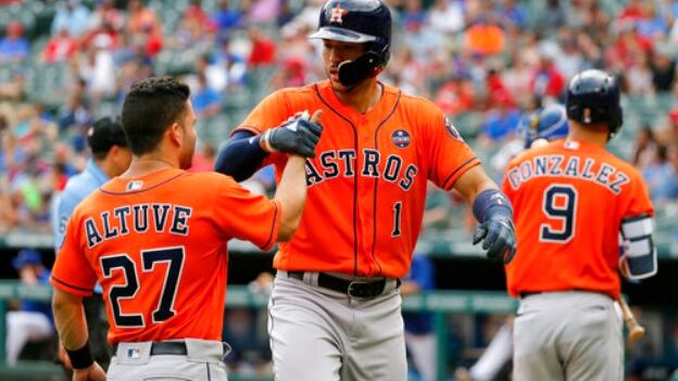 El boricua Carlos Correa sacudió dos jonrones, en tanto que George Springer disparó un grand slam, para que Houston (98-60) arrollara 37-7 a Texas en la serie. Los Astros buscan alcanzar a Cleveland, que ostenta por ahora la mejor foja de la Liga Americana.