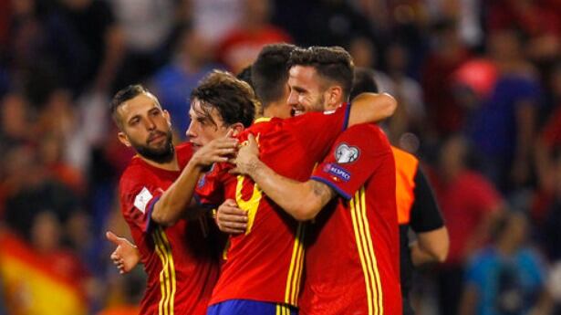 Rodrigo, Isco y Thiago Alcántara marcaron en el primer tiempo. España sacó una ventaja de cinco puntos sobre Italia en la cima del Grupo G, cuando resta una sola fecha en las eliminatorias europeas.