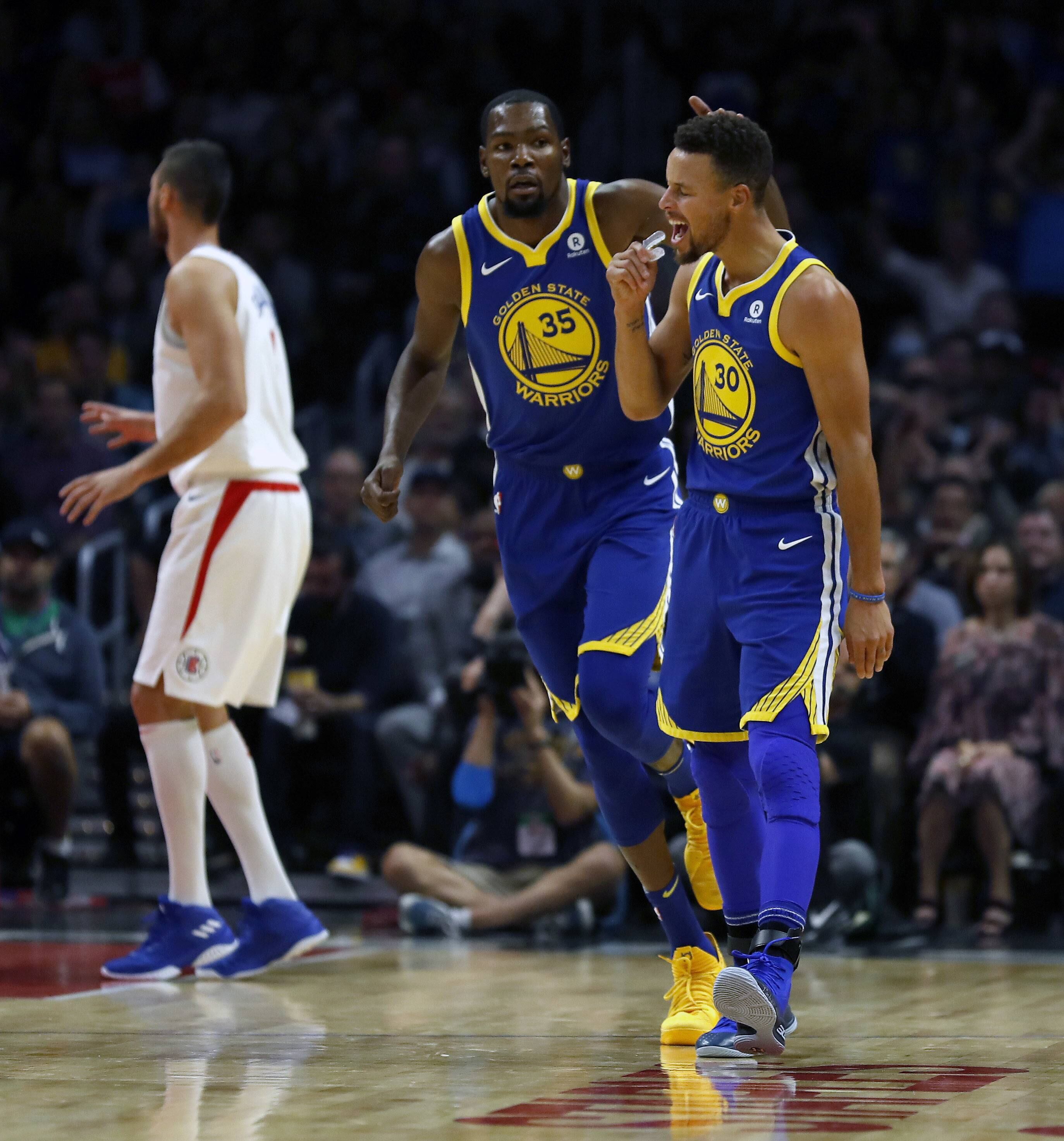 Stephen Curry aportó 31 puntos y Kevin Durant añadió 19 para que los Warriors de Golden State apabullaran el lunes 141-113 a los Clippers de Los Ángeles.