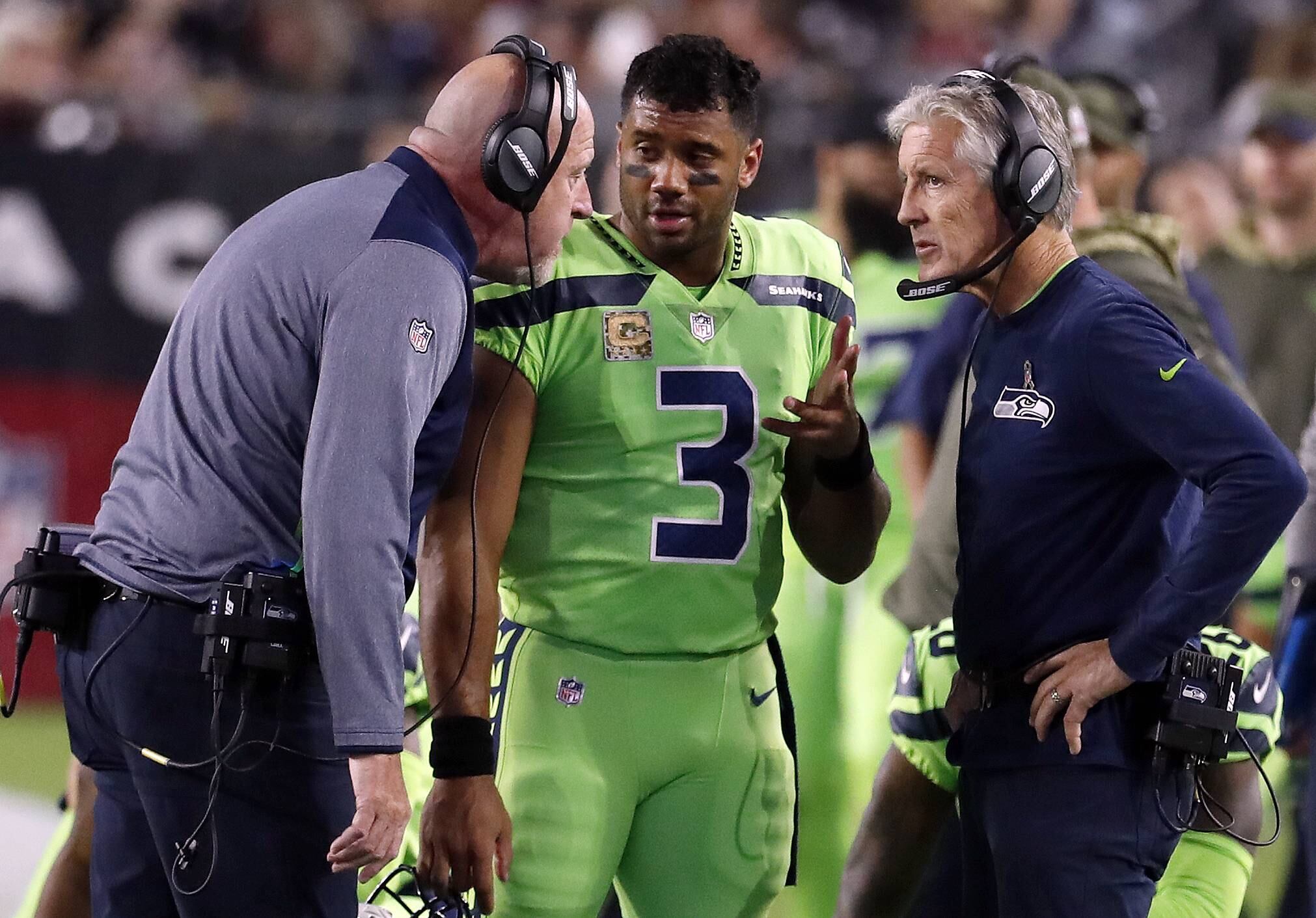 Wilson fue golpeado en la cabeza por el jugador de Arizona, Karlos Dansby, quien fue amonestado por violencia excesiva. El árbitro Walt Anderson envió a Wilson al costado de la cancha, pero el quarterback estuvo en la carpa de lesionados por apenas un instante y se perdió una sola jugada.