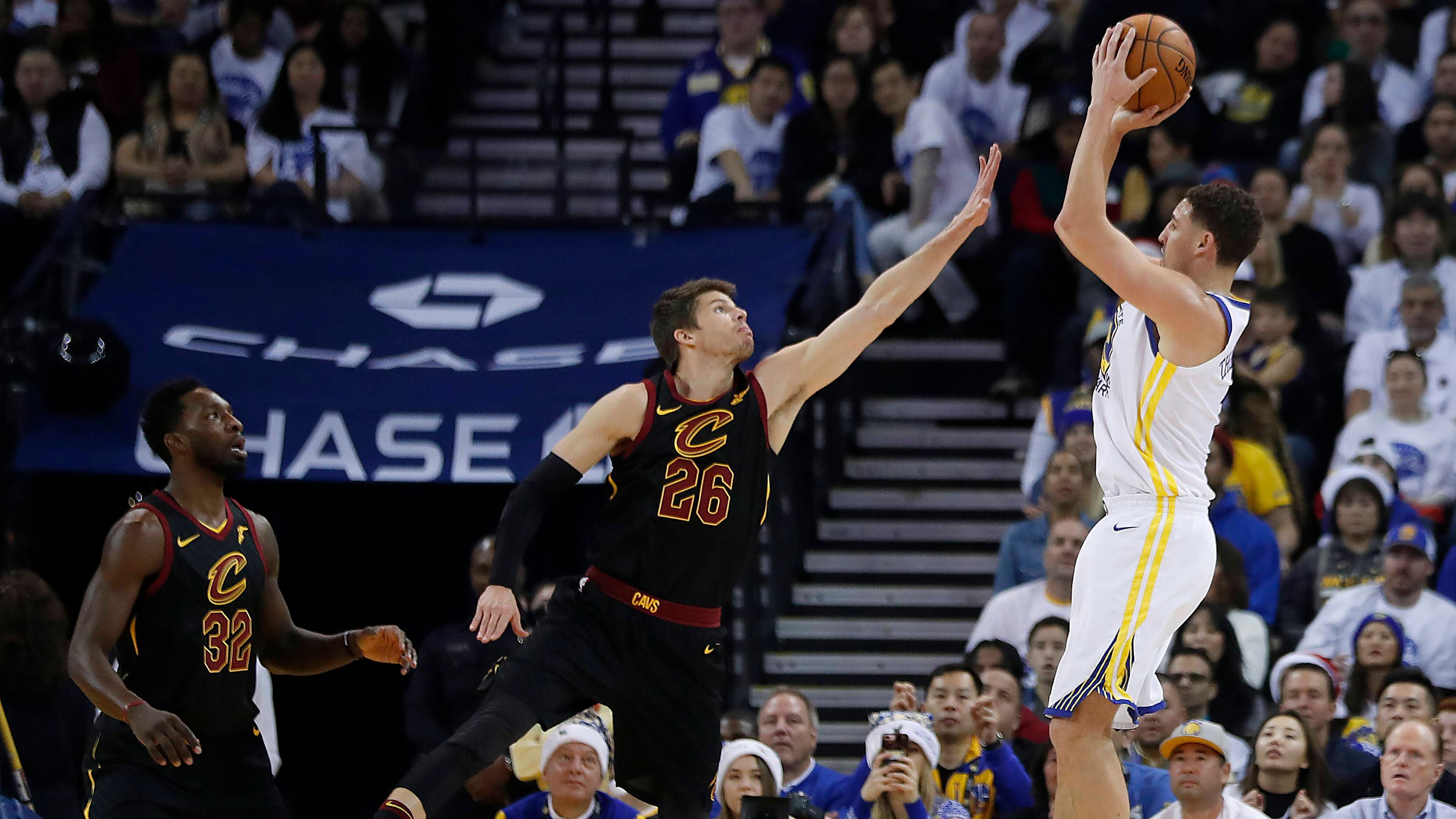 OAKLAND, California — Klay Thompson atinó un triple con 1:33 minutos por jugarse, Kevin Durant lució como lo hizo en la final anterior, y los Warriors de Golden State se impusieron el lunes 99-92 a los Cavaliers de Cleveland.