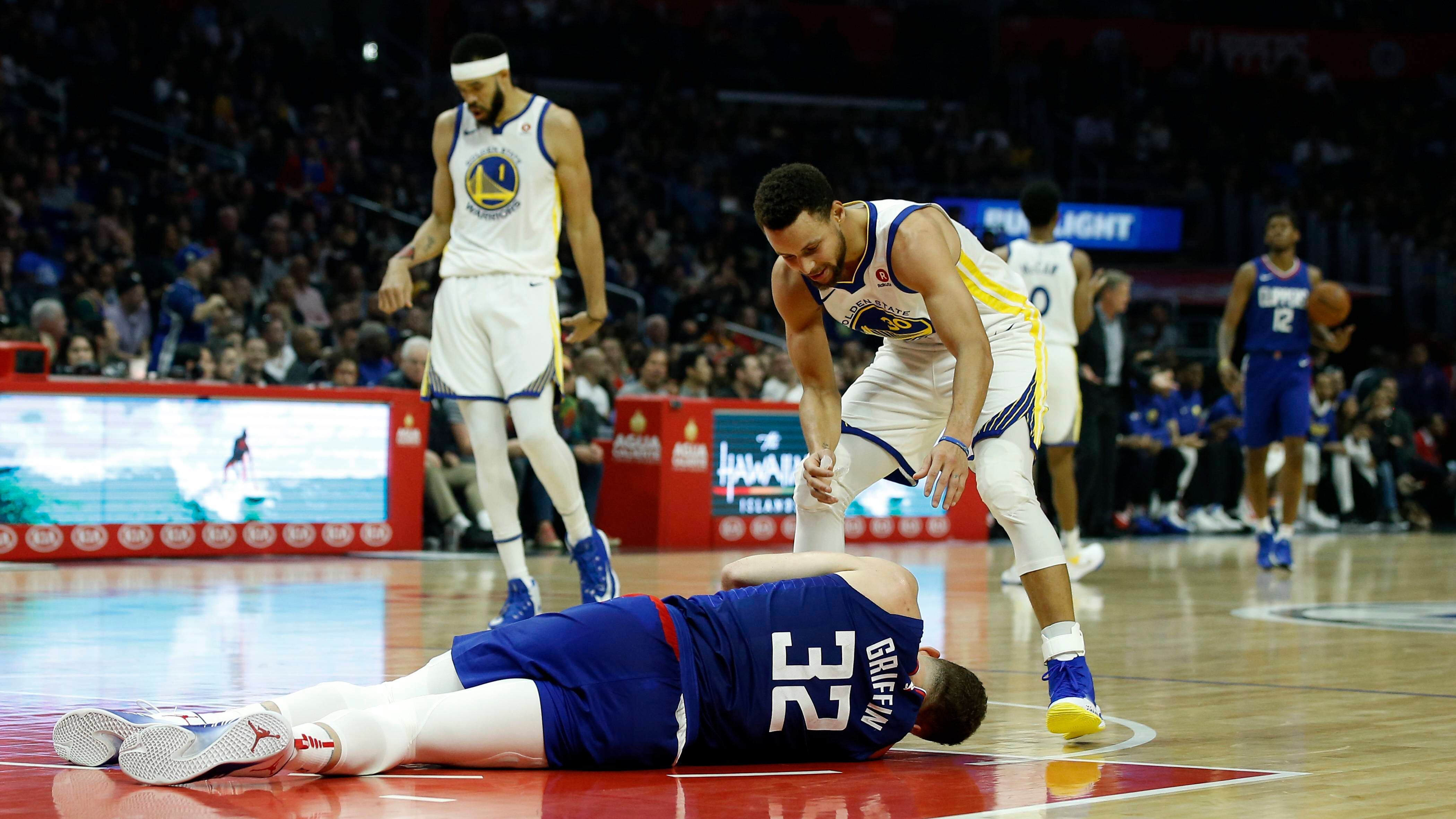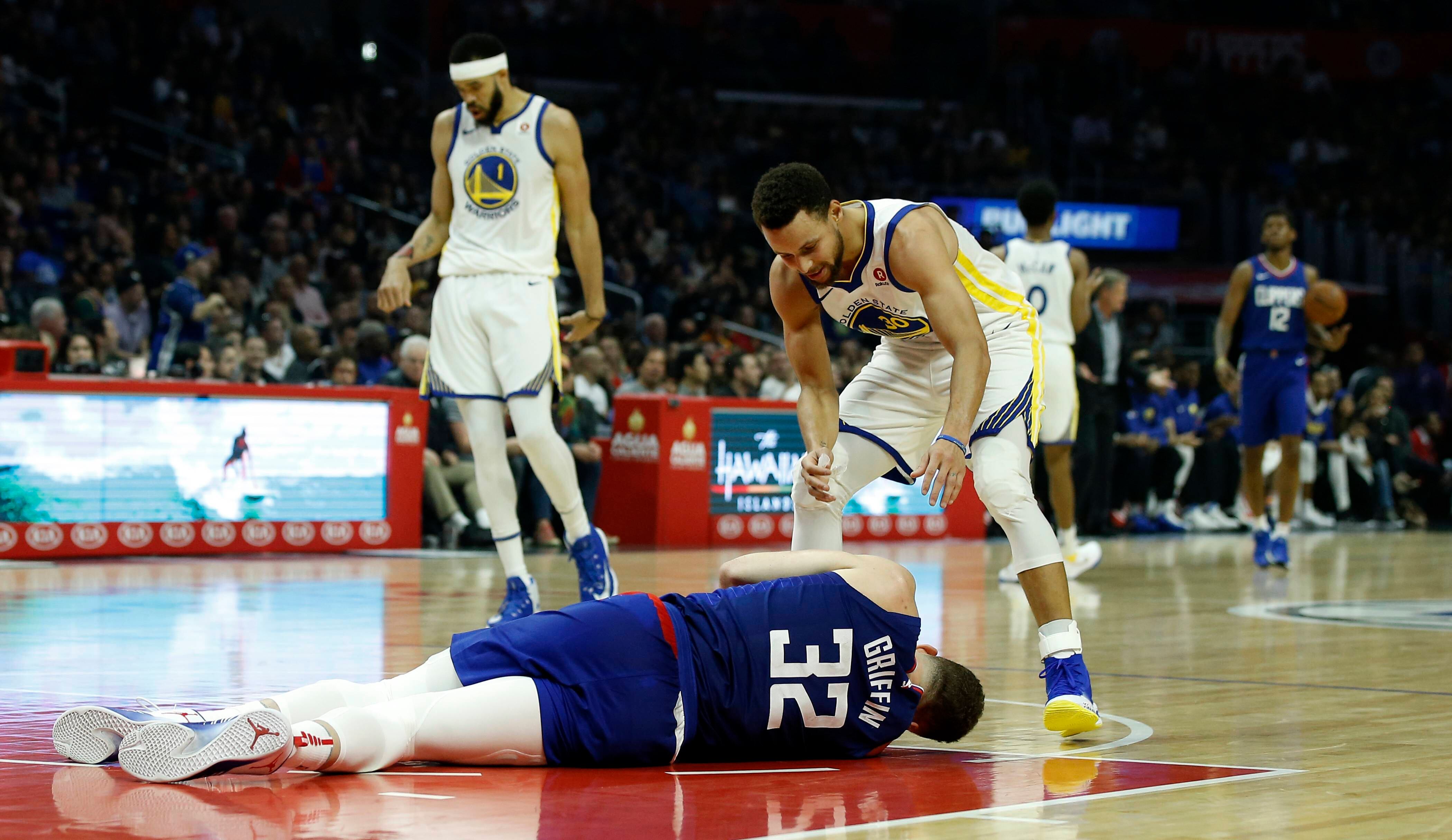 Por los Clippers, Blake Griffin sufrió una conmoción hacia el final del primer cuarto, cuando su cabeza se impactó con el codo derecho de JaVale McGee mientras atacaba el canasto. Griffin cayó de inmediato y permaneció tendido sobre la duela por varios minutos mientras recibía atención médica. Salió de la cancha sin ayuda y directo a los vestuarios.