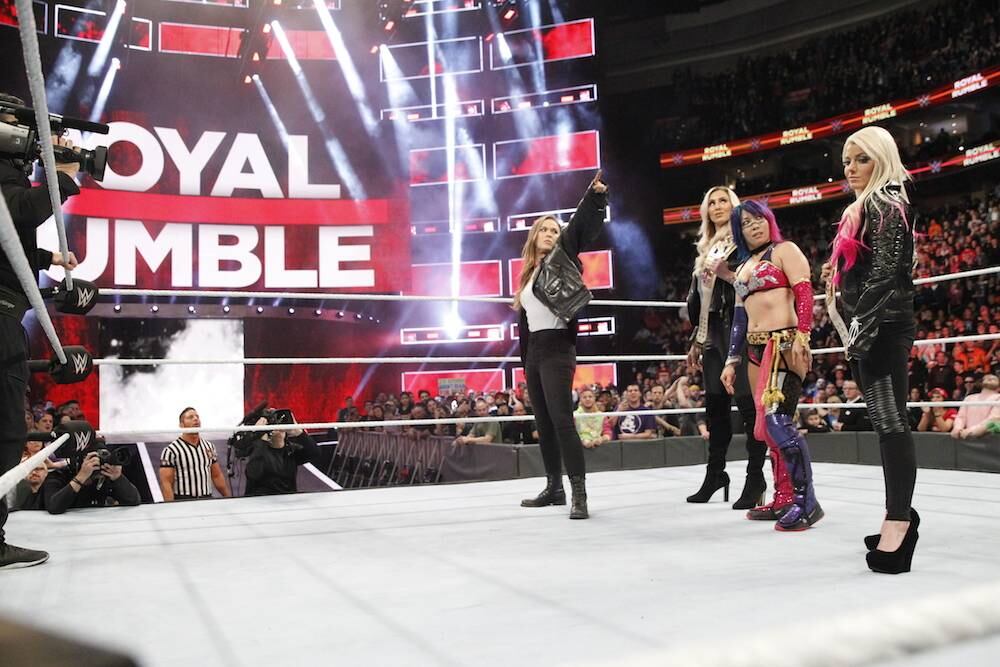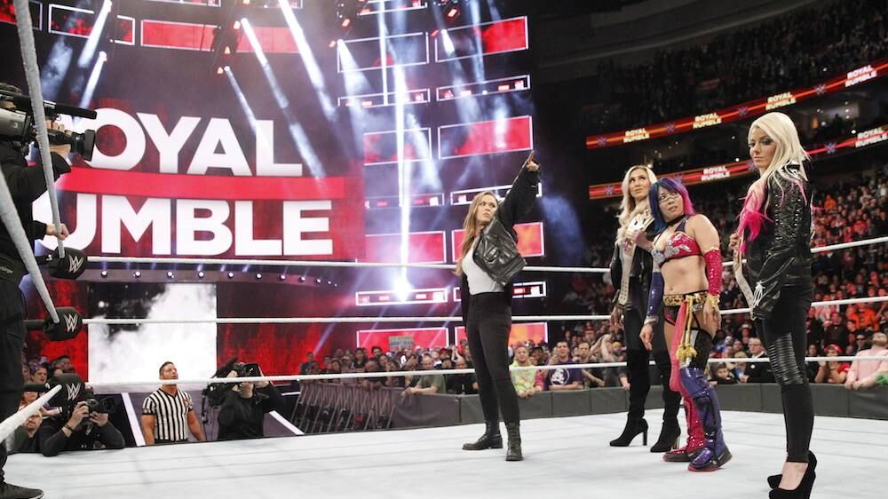 Una vez terminado el primer Royal Rumble de mujeres, el cual fue para Asuka. La japonesa japonesa estaba a punto de decidir si enfrentaba a Charlotte o a Alexa Bliss en el evento magno de la empresa; sin embargo empezó a sonar la canción Bad Reputation de Joan Jett.