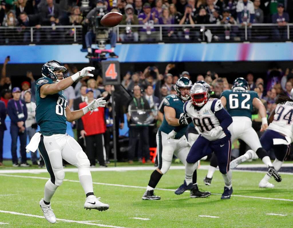 Pero el centro llegó de inmediato, hacia el tight end Trey Burton, quien lanzó un pase al propio Foles para que el mariscal de campo consiguiera la anotación. Una última serie de Nueva Inglaterra no encontró frutos antes de que se agotara el tiempo.