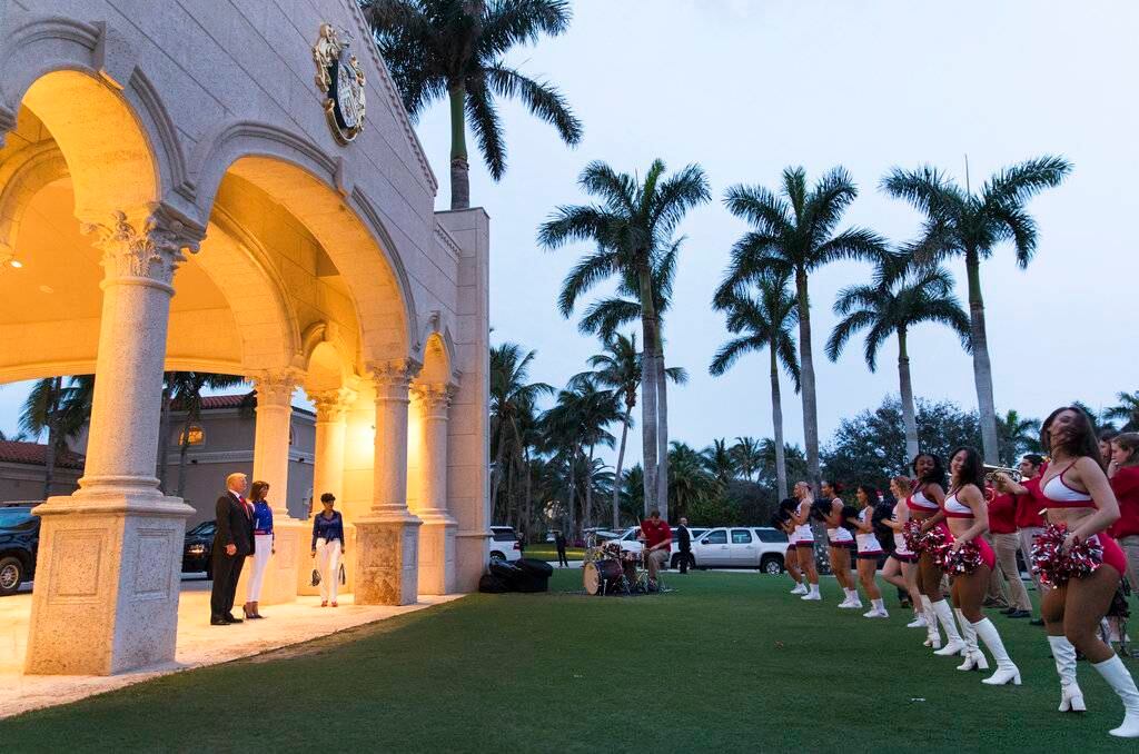 Trump ofreció una fiesta para ver el Super Bowl en su club privado de golf en West Palm Beach, Florida. Él y la primera dama Melania Trump arribaron poco antes de que comenzara el encuentro. A su llegada, la Banda Musical de la Universidad Atlantic en Florida ejecutó “Hail to the Chief”, “Boogie Wonderland” y “Shut Up and Dance”.
