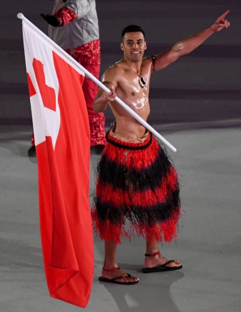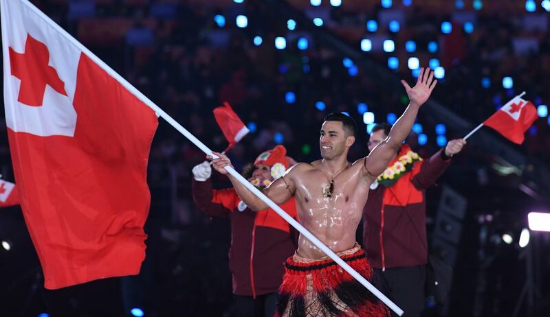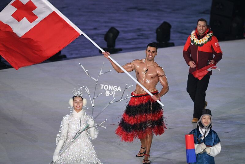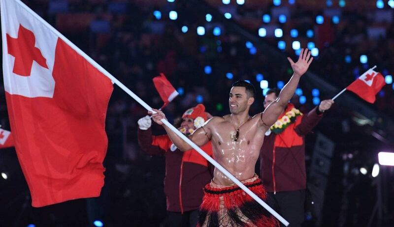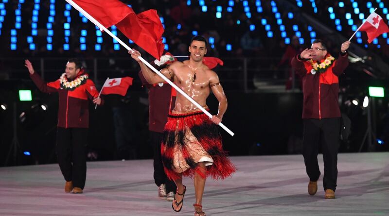 El abanderado de Tonga desafió las temperaturas glaciales de Corea del Sur y desfiló con el torso desnudo, lleno de aceite, este viernes en la inauguración de los Juegos de 2018.