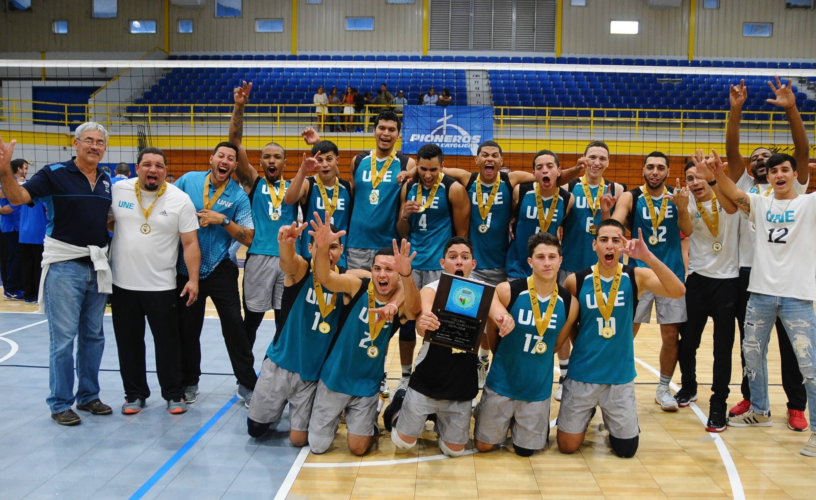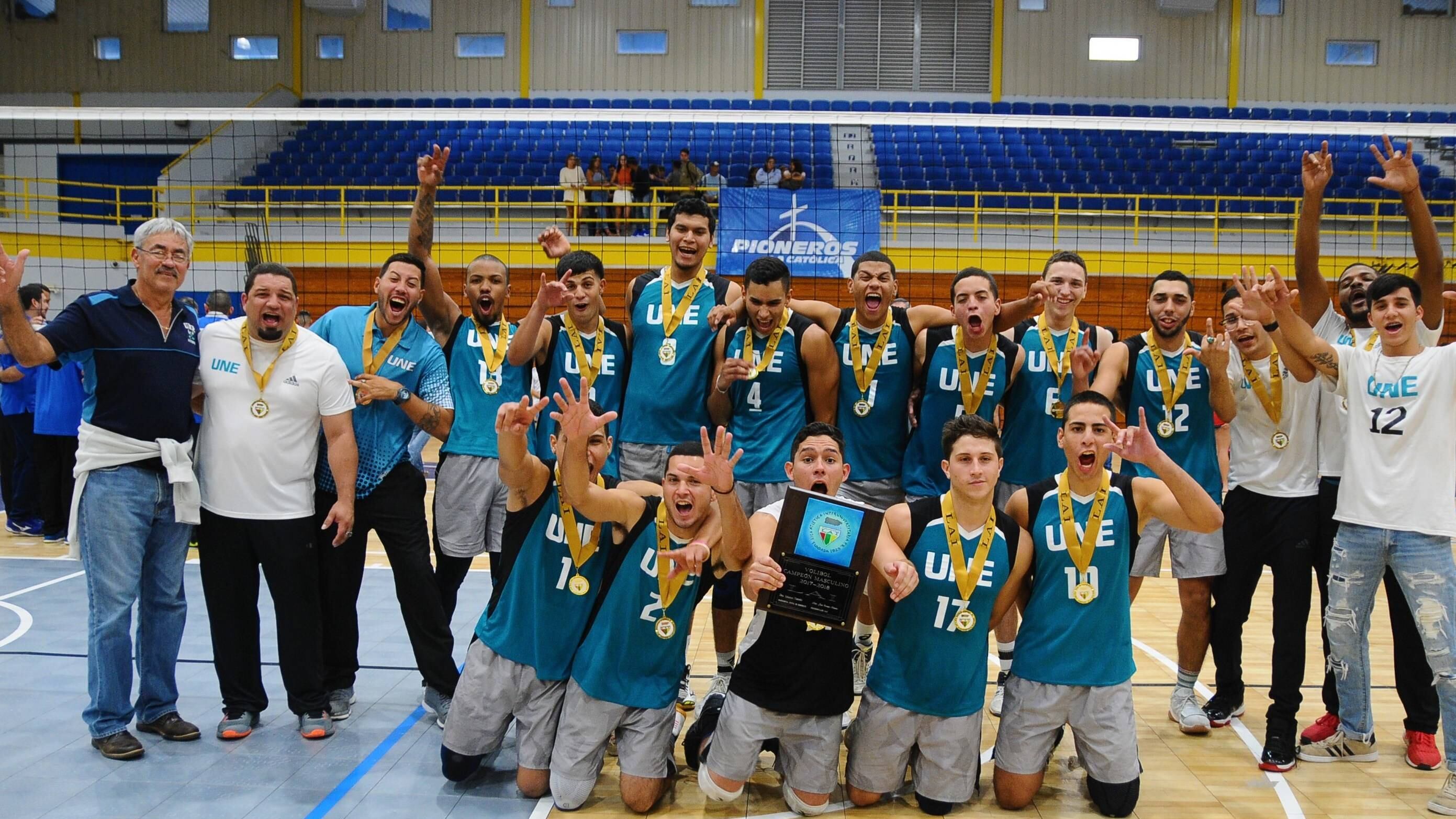 Los Pitirres de la Universidad del Este (UNE) revalidaron el miércoles como monarcas del voleibol de la Liga Atlética Interuniversitaria (LAI) al vencer en sets corridos a los Pioneros de la Pontificia Universidad Católica, ante más de 900 personas que se dieron cita en el complejo deportivo y cultural de la institución pontífice en Ponce.