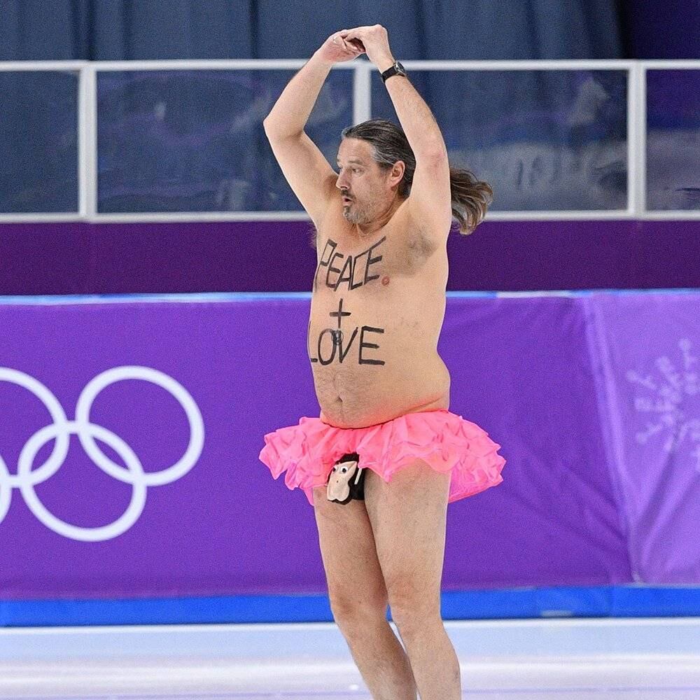 Mark Roberts fue el encargado de dejar una historia más que contar en los Juegos Olímpicos de Invierno PyeongChang 2018 tras aparecer en tutú rosa en la pista de hielo y con la leyenda de ’Peace and Love’.