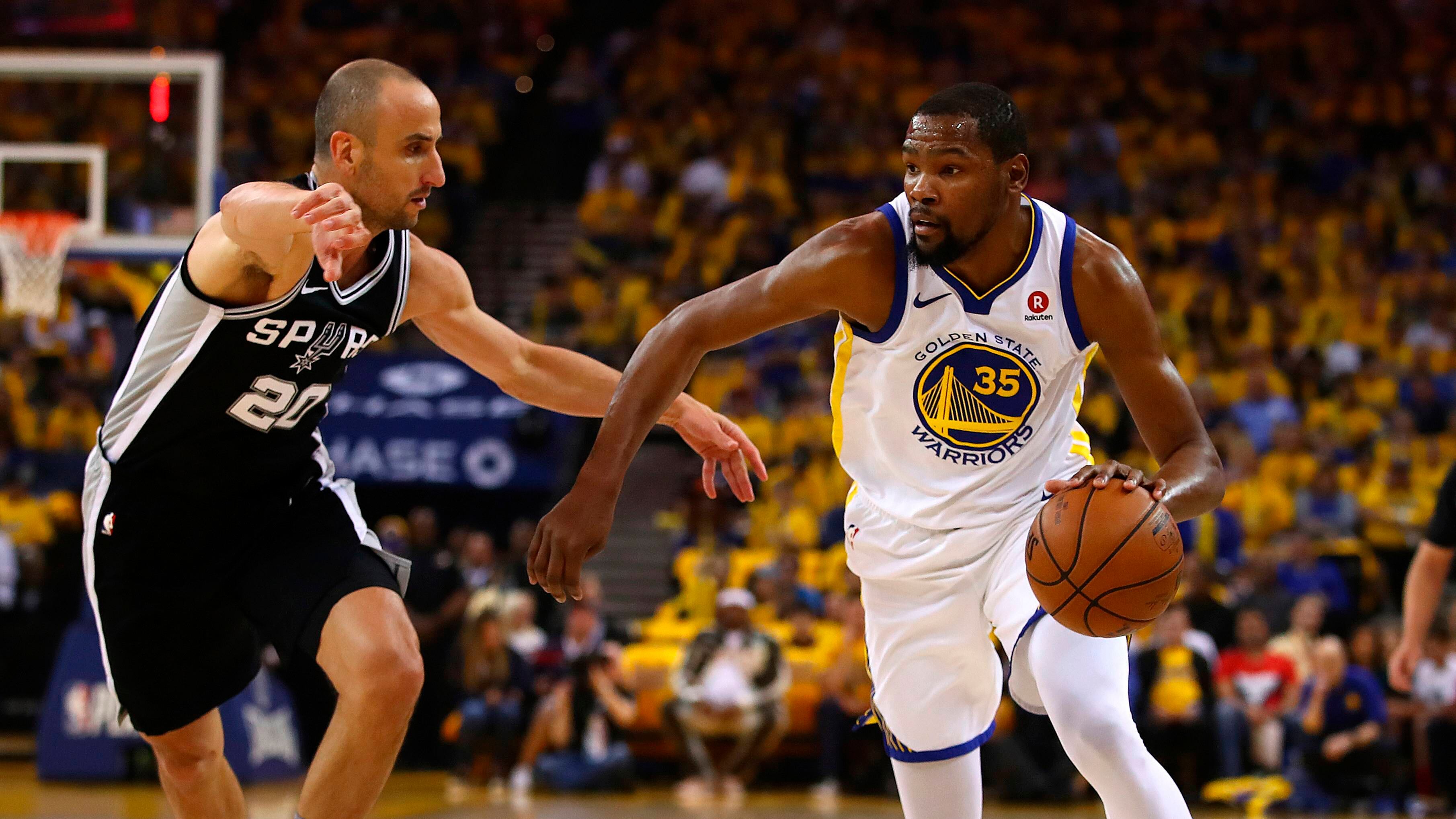 Kevin Durant anotó 24 puntos, además de conseguir ocho rebotes y dar siete asistencias, para que los campeones vigentes recuperasen su versión dominante al vencer el sábado por 113-92 a los Spurs de San Antonio.