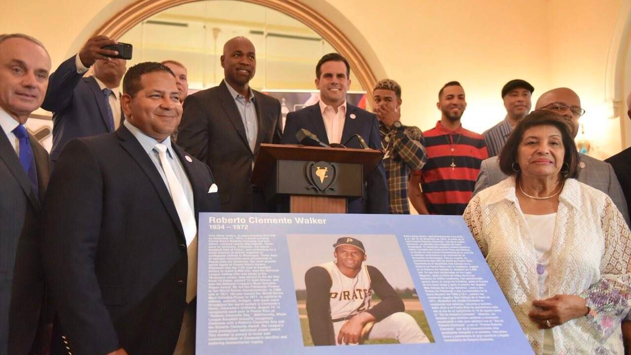 El gobernador Ricardo Rosselló Nevares develó hoy, miércoles, junto al comisionado de las Grandes Ligas del Béisbol (MLB, siglas en inglés), Robert Manfred Jr., una tarja en honor al pelotero puertorriqueño Roberto Clemente Walker.