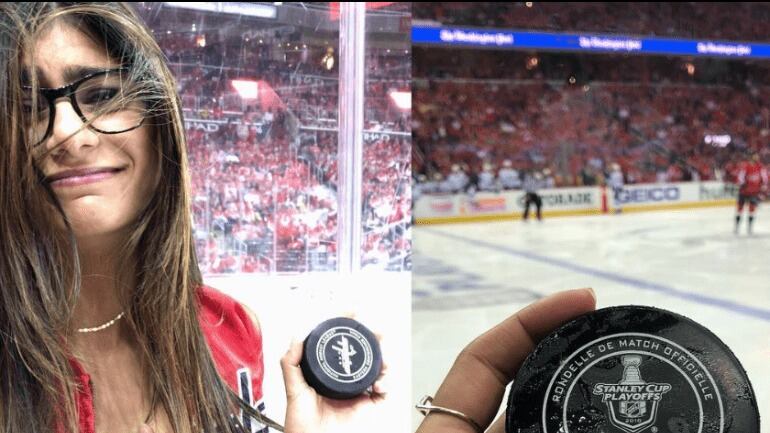 “Me ha golpeado un pock en el pecho durante el partido y estoy 80% segura de que se me ha roto el implante de seno. La buena noticia es que he conseguido un pock de la serie entre Capitals y Lightning”, destacó la sensual Mia Khalifa.