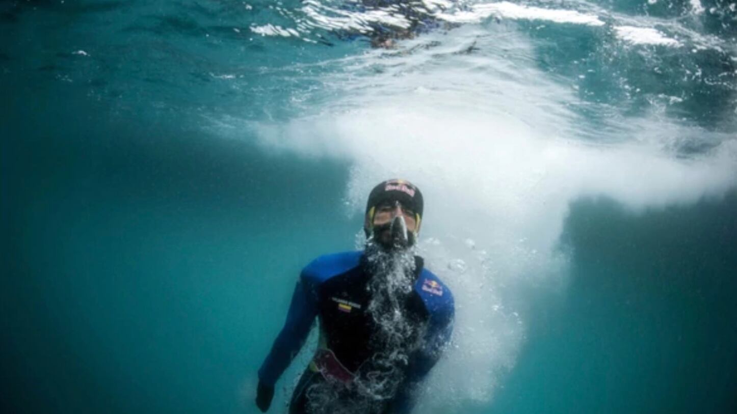 Después de escalar 20 metros de un iceberg para convertir su trabajo en realidad, Orlando Duque se dio tiempo de romper su propia marca con ayuda de un crampón, dos piolets y un traje de neopreno de 7 milímetros de grosor, todo esto para desafiar los fríos parajes de la Antártida.