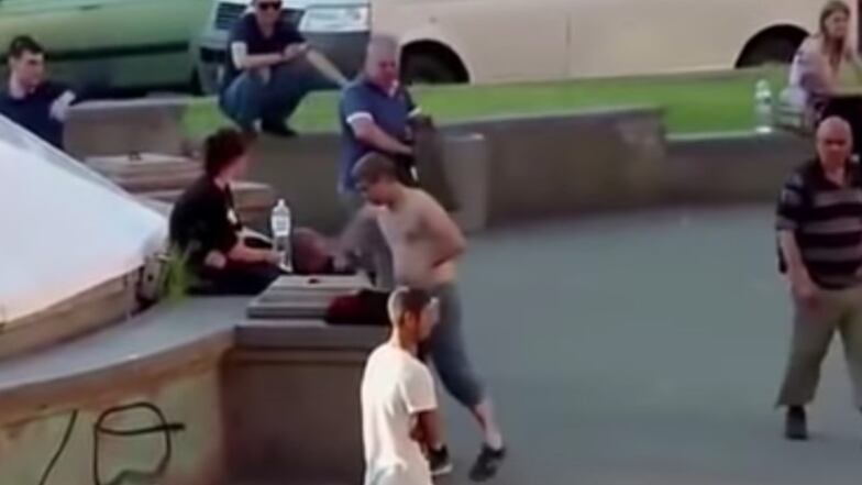 Un hombre sin playera estuvo agrediendo a algunos seguidores ingleses antes de que abrieran el inmueble, incluso se puede apreciar en el video cómo golpeó hasta el cansancio a otro hombre que se encontraba sentado y con la cara ensangrentada.