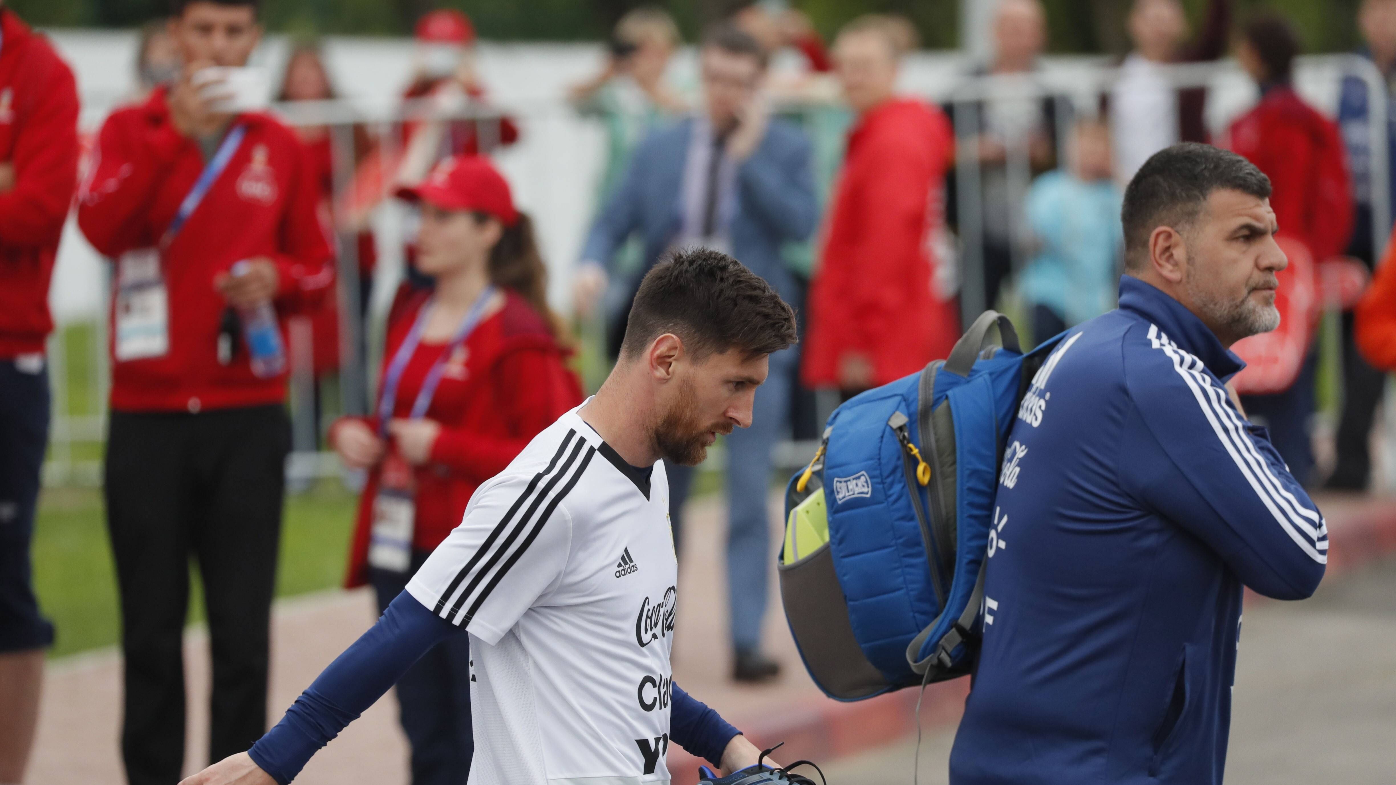 El argentino Leo Messi desató hoy la locura en el primer entrenamiento abierto al público de la Albiceleste desde su llegada a Rusia.