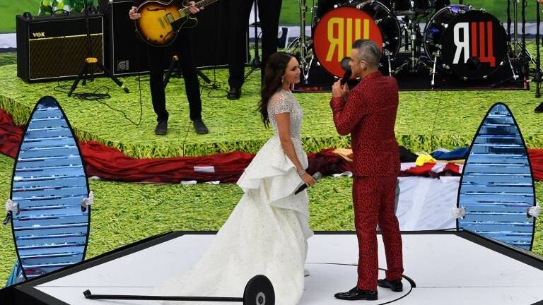 Robbie Williams, junto a la rusa Aida Garifullina, fueron los artistas encargados de amenizar el inicio de la Copa del Mundo.
