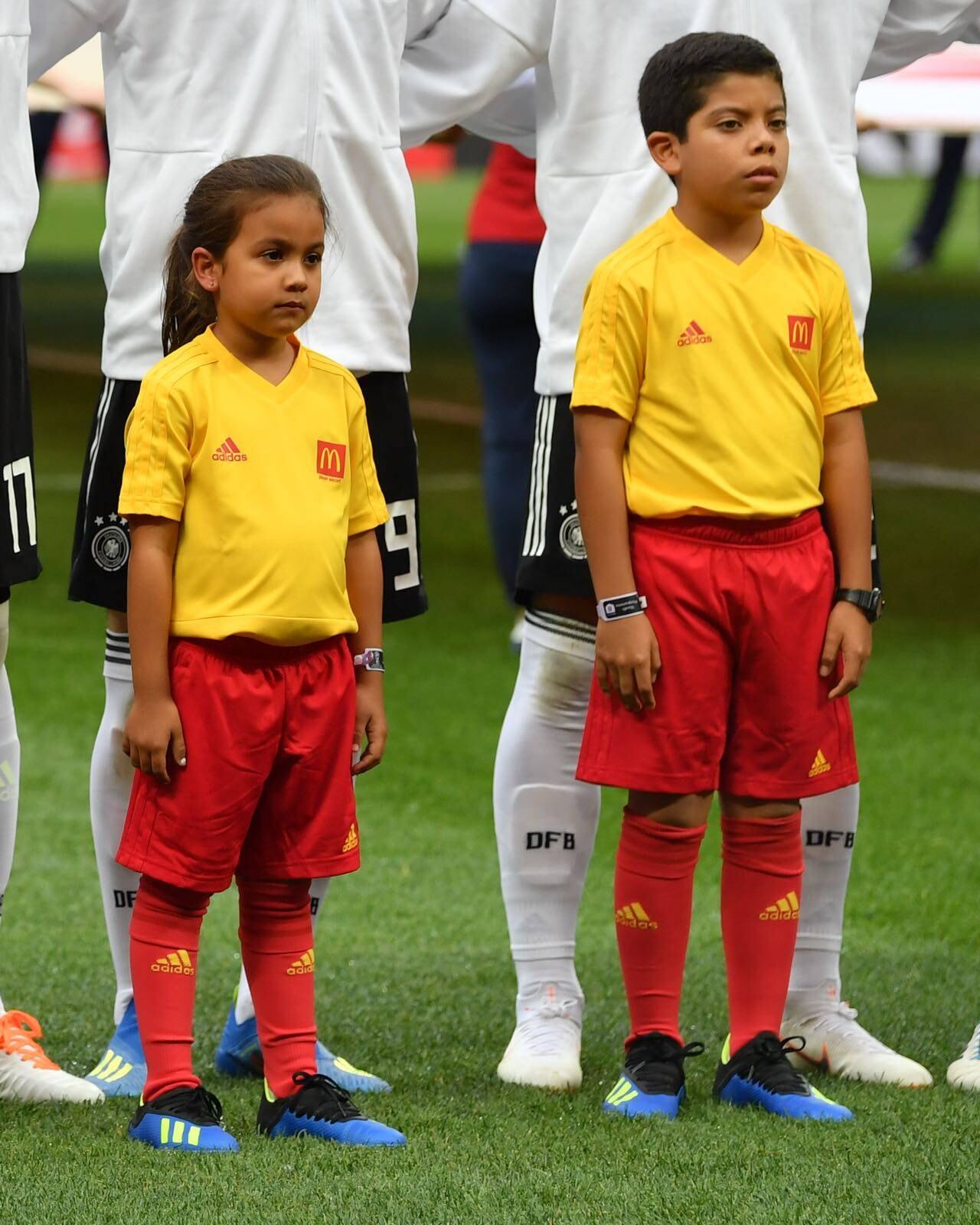 Miles de fanáticos del fútbol estuvieron atentos hoy a los player escort que acompañaron a los atletas al terreno de juego en el Estadio Luzhniki en Moscú, capital de Rusia.