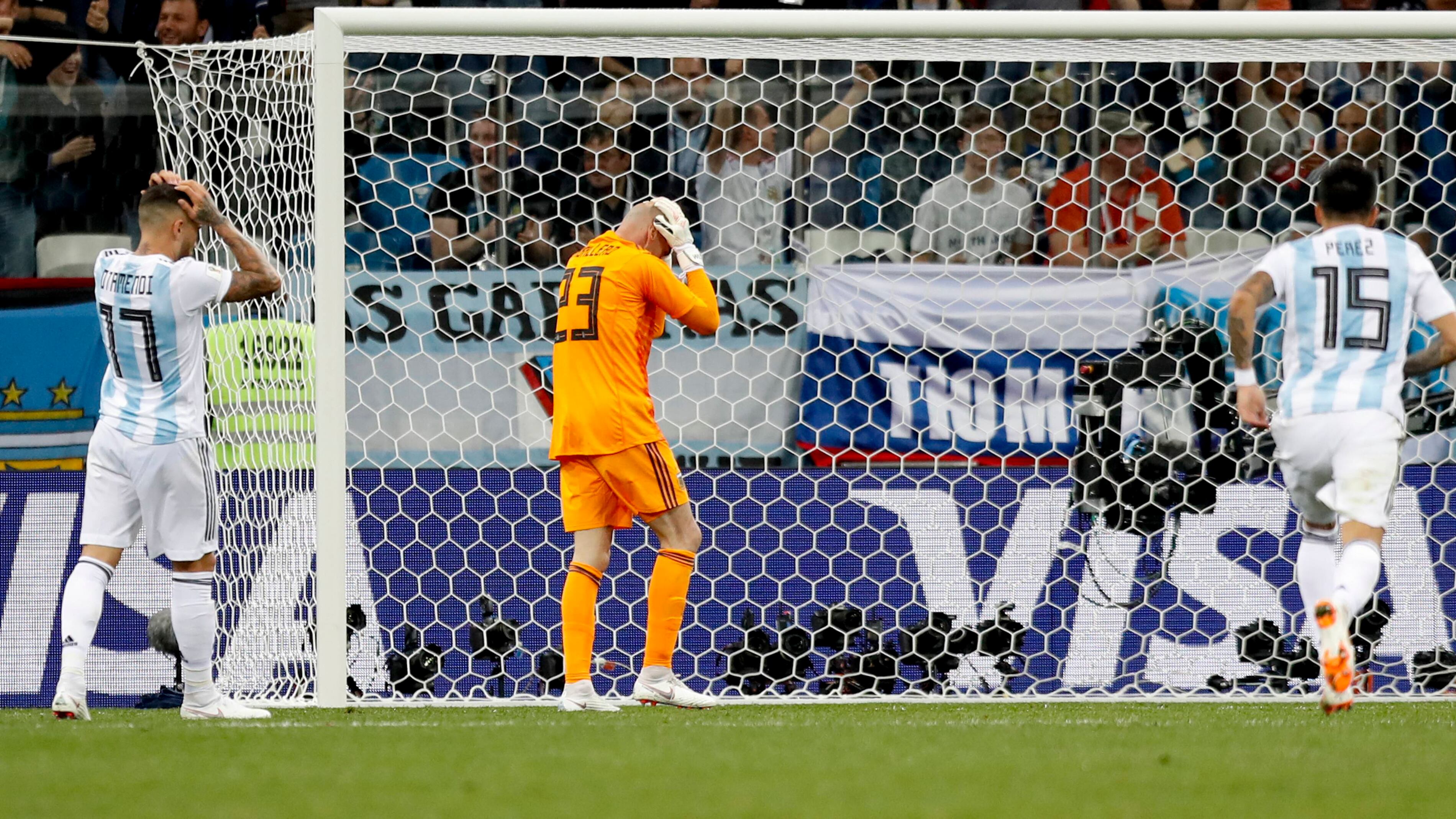 Pasamos al segundo tiempo, y se vino la noche para los pupilos de Sampaoli. Se jugaba el minuto 53 y se produjo el mayor error de todo el campeonato, y quizá el peor yerro en la historia de Argentina en las Copas del Mundo.