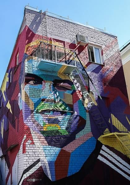 El mural de la cara de Cristiano Ronaldo tiene unos meses en Kazán. Este se realizó cuando Portugal jugó la Confederaciones del 2017. Además el mural lo hicieron en sólo tres días de formas geométricas. Se especula que la pared donde esta la pintura de CR7 tiene más de 7 metros de altura.