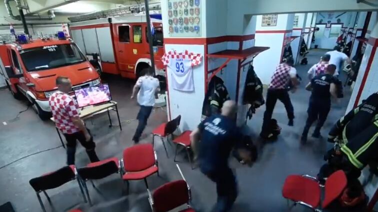 Los bomberos se encontraban con sus jerseys del combinado balcánico, cuando empezó a sonar la alarma en medio de la tanda de penales que estaba por llegar a su fin, por lo que de inmediato se levantaron sin pensarlo para ponerse sus uniformes en segundos y arrancar con su vehículo.