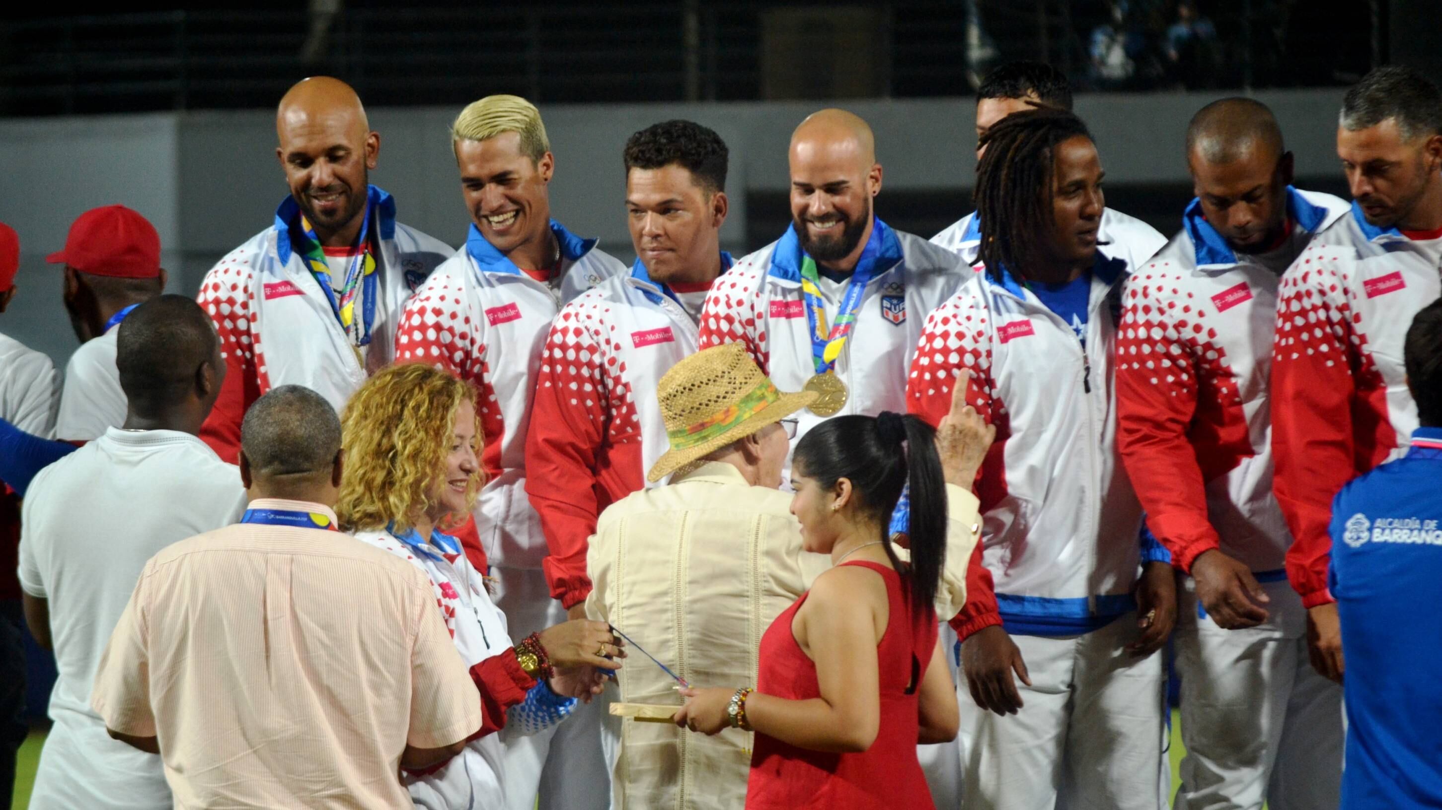 Junto a Puerto Rico, subieron al podio las selecciones de Cuba y Colombia, que cargaron con las medallas de plata y bronce, respectivamente. Al recibir sus preseas, los boricuas fueron presentados y de inmediato sonó La Borinqueña.