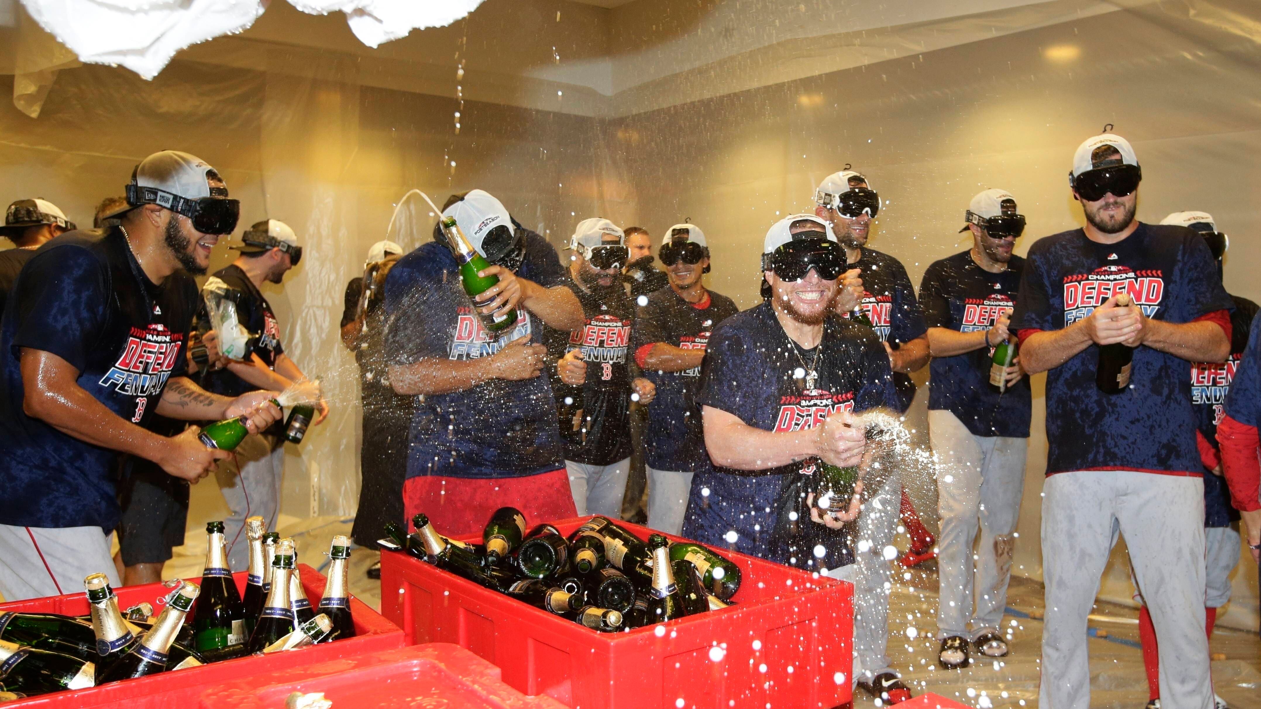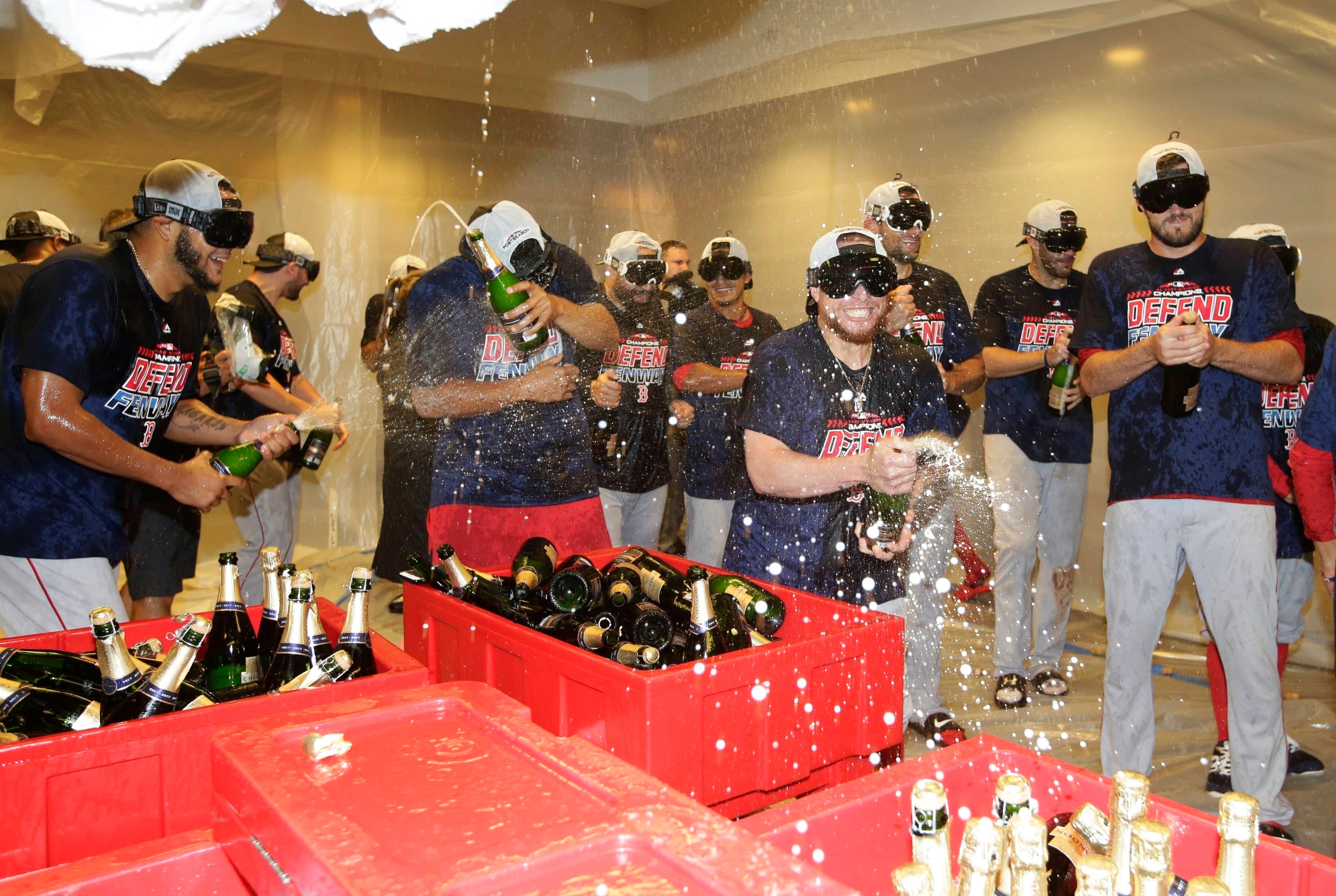 Tras posponer el festejo un par de días, los Medias Rojas lograron al fin descorchar las botellas en el Bronx.