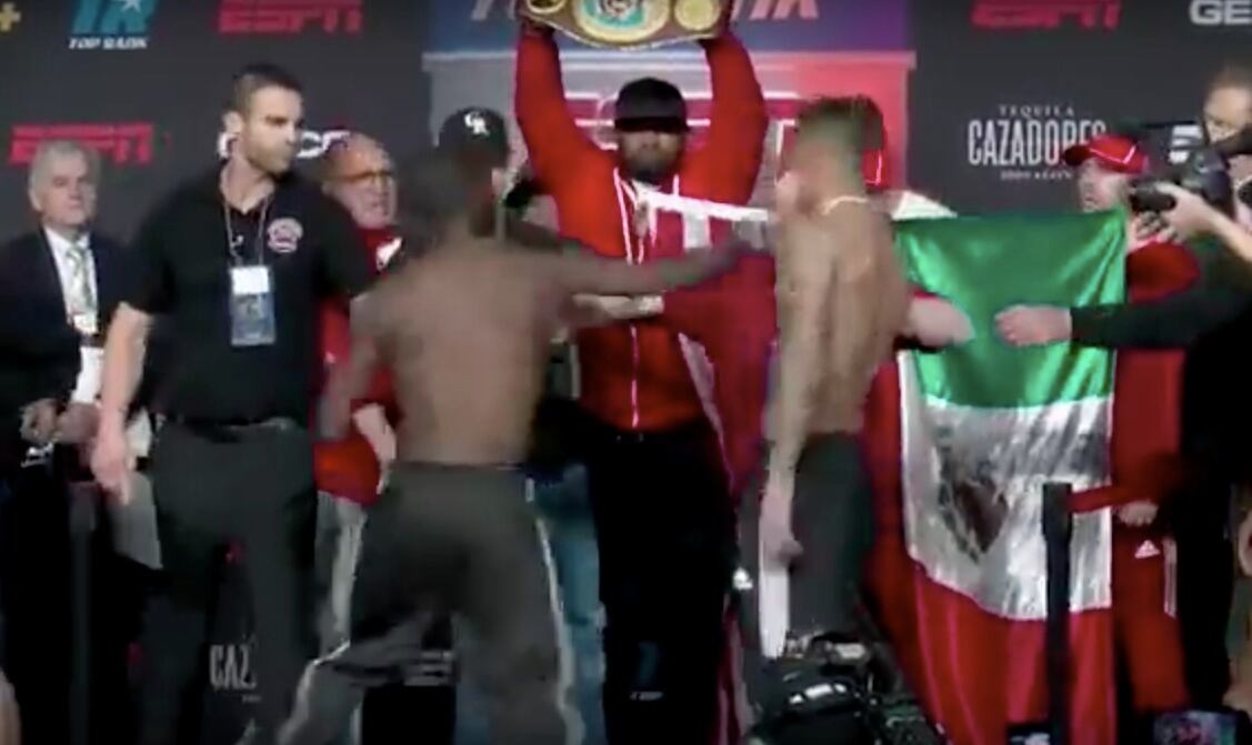 Terence Crawford y José Benavidez Jr. se vieron las caras durante el pesaje previo a la pelea donde de disputarán el campeonato de peso Welter de la OMB y durante el frente a frente hubo empujones y algunos insultos que hicieron que la tensión alcanzara altísimos niveles cuando el campeón defensor, Crawford lanzó un derechazo que afortunadamente no conecto gracias a que Benavides lo esquivó.