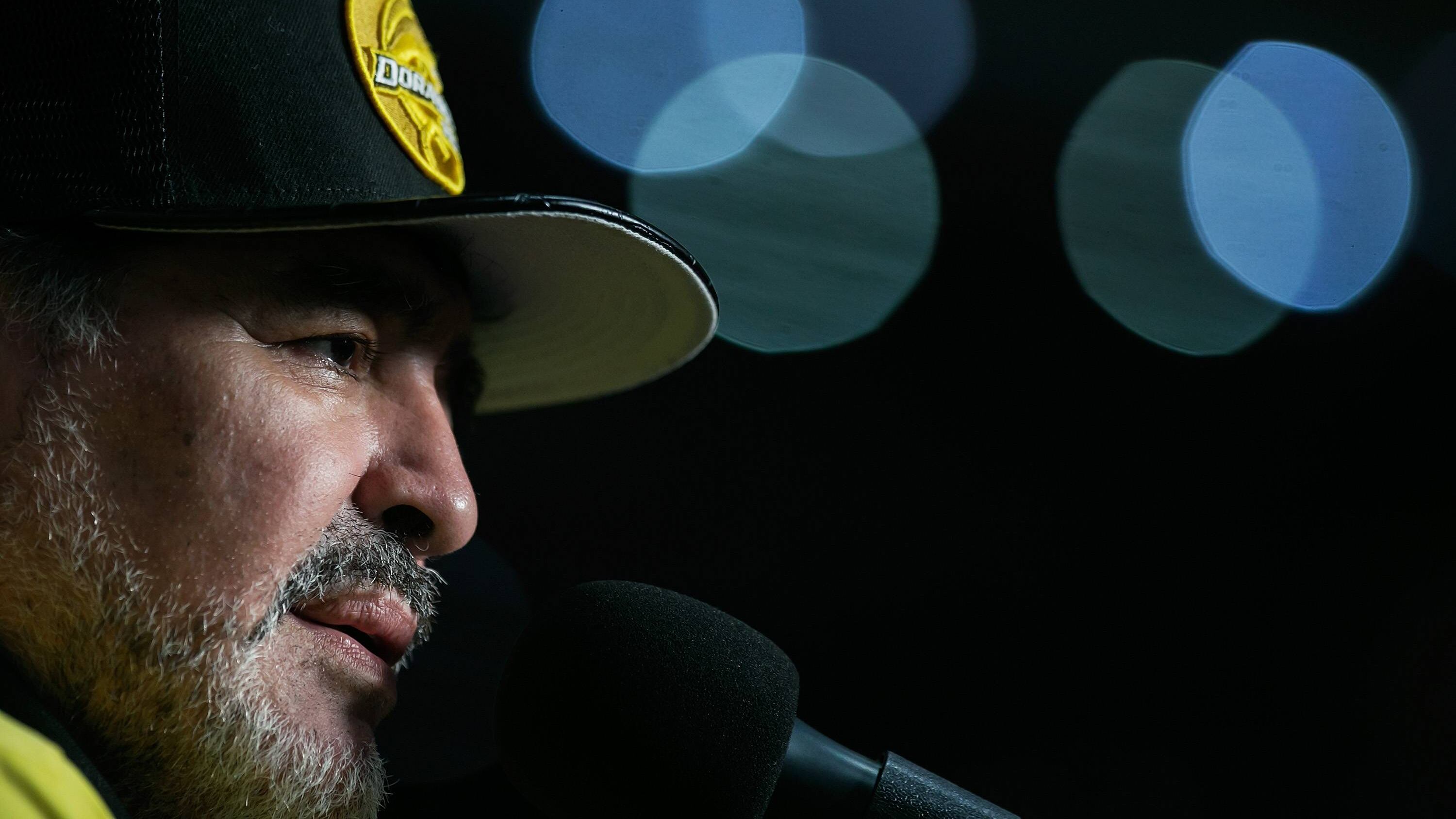 Hace unos días Diego Armando Maradona arremetió contra Lionel Messi e hizo fuertes declaraciones en las que dijo que el jugador del Barcelona no tenía la suficiente capacidad para ser líder en la Selección Argentina y luego del partido de Dorados, en conferencia de prensa, el ‘Pelusa’ negó haber criticado a ‘La Pulga’.