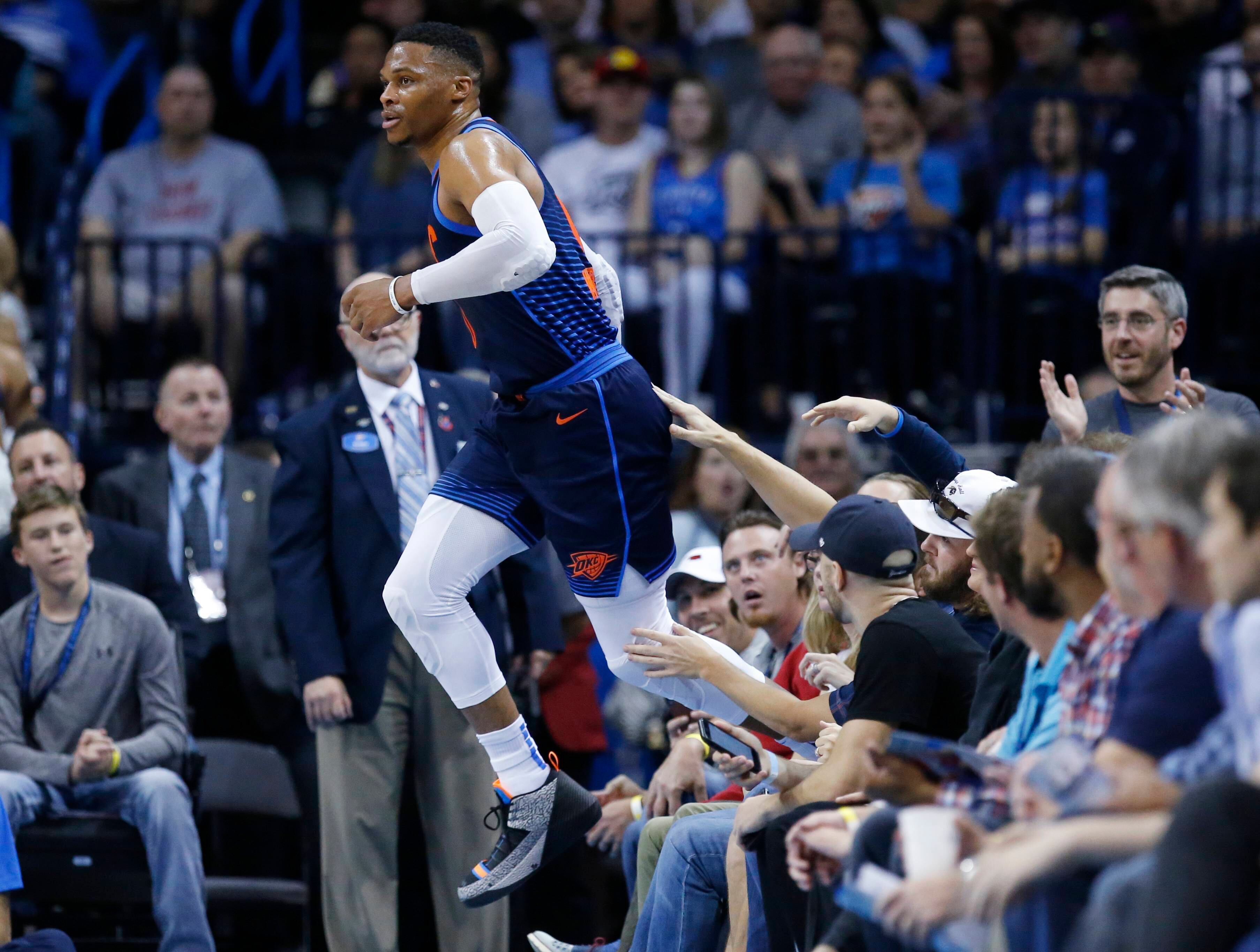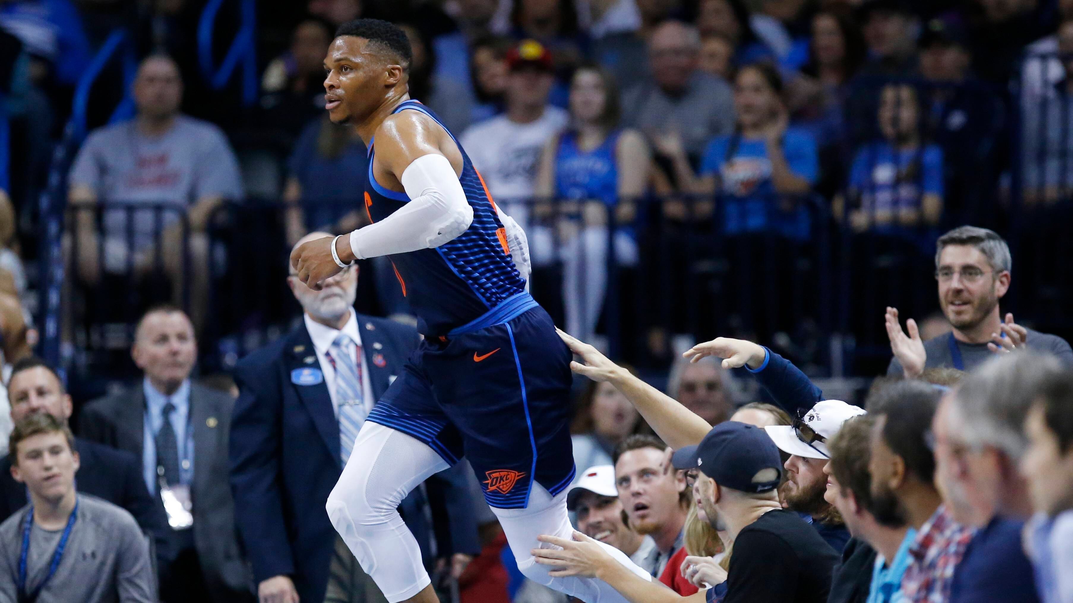 Westbrook se perdió la pretemporada y los primeros dos juegos de la campaña regular después de someterse a un procedimiento para aliviar una inflamación en la rodilla derecha. Finalizó con 32 puntos, 12 rebotes y ocho asistencias en 35 minutos, después de promediar un triple-doble las últimas dos temporadas.