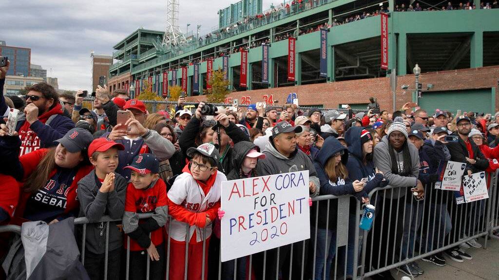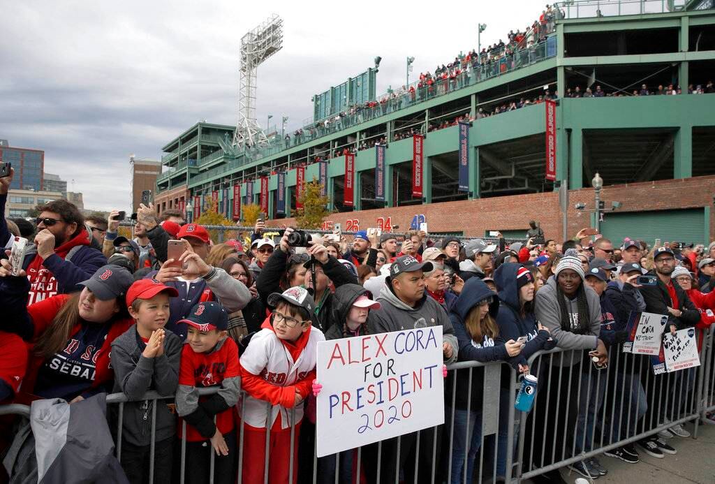 Durante una ceremonia previa al desfile en el Fenway, el mánager de los Medias Rojas, Alex Cora, agradeció a los aficionados por apoyar al equipo durante lo que llamó una “temporada histórica”, en la que ganaron 108 partidos durante la campaña regular antes de vencer a los Yanquis de Nueva York, los Astros de Houston y los Dodgers de Los Ángeles en los playoffs.