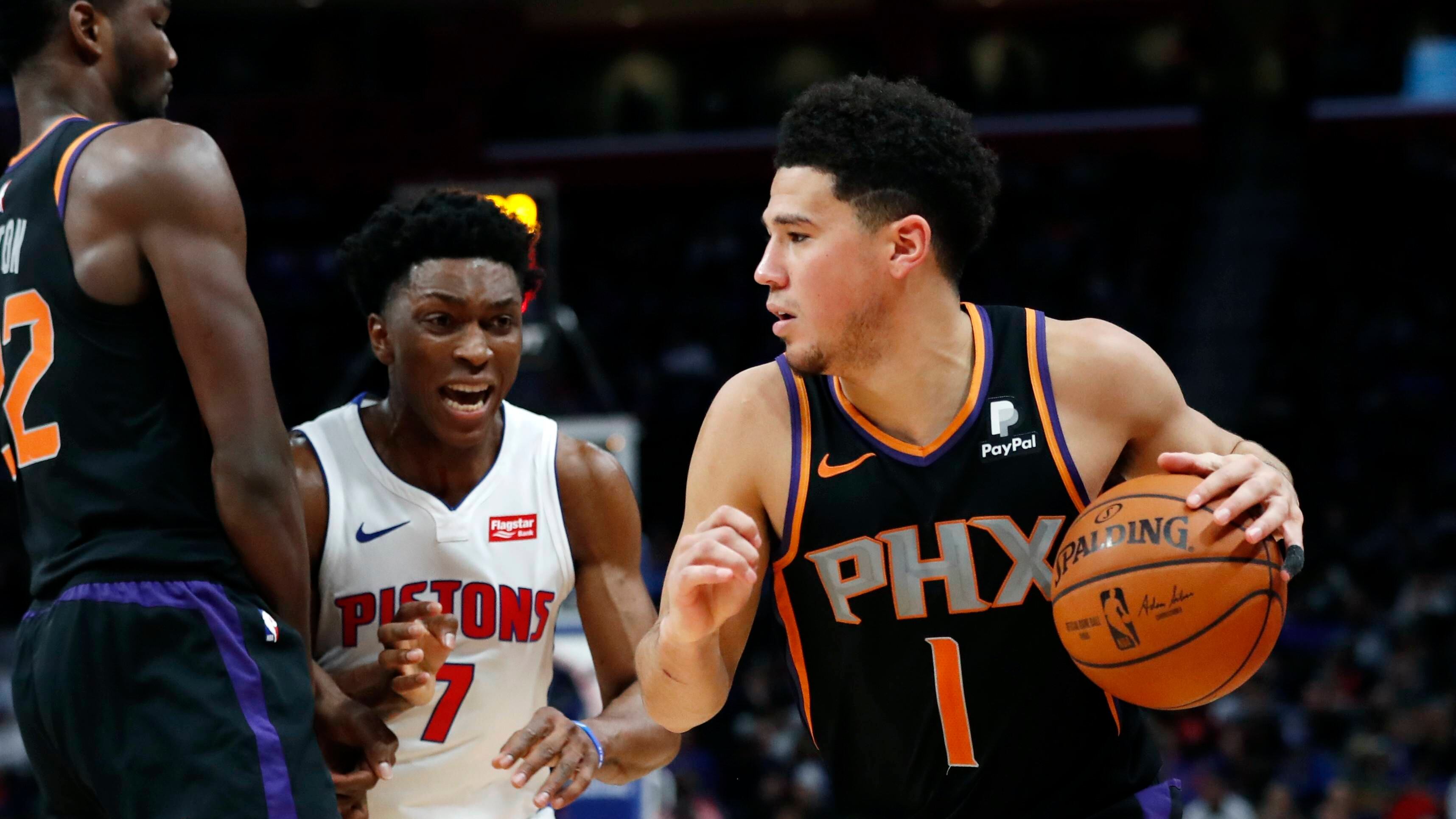Booker anotó 21 puntos en la primera mitad, pero los Pistons ganaban 62-60 al medio tiempo. En duelo se mantuvo cerrado a lo largo del tercer periodo, y seguía empatado 88-88 en el último cuarto.