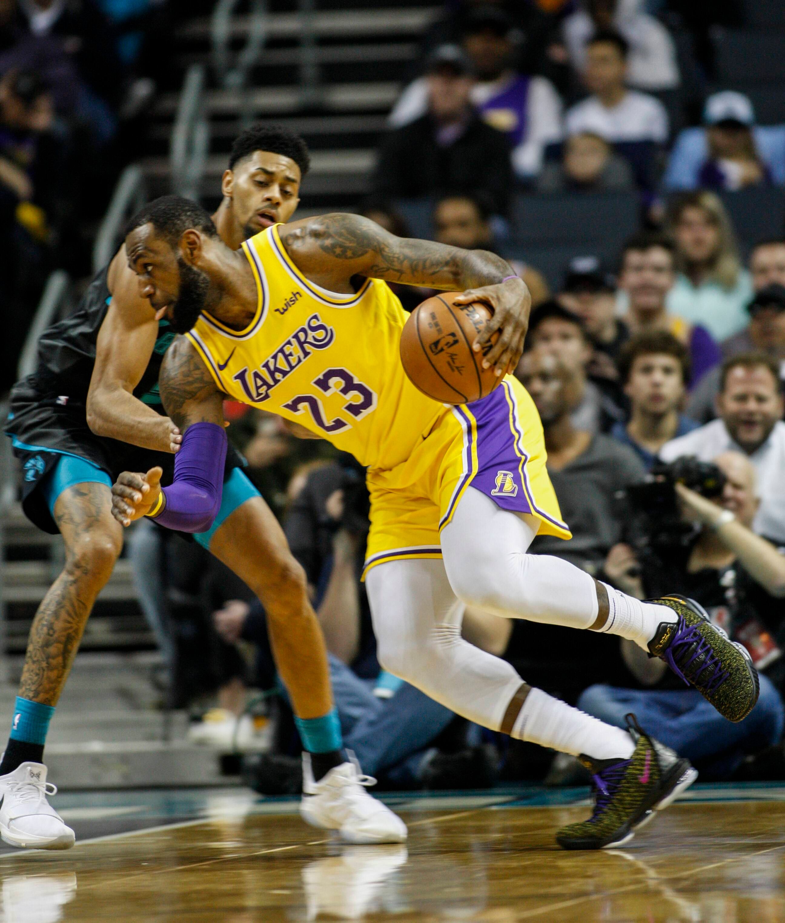 Nadie le pudo parar cuando penetraba en la pintura, y los Lakers superaron a los Hornets por 40-17 en el tercer cuarto, abriendo una diferencia de 30 puntos con su segundo triple doble de la temporada y el número 75 de su carrera. No jugó en el cuarto periodo con el partido liquidado.