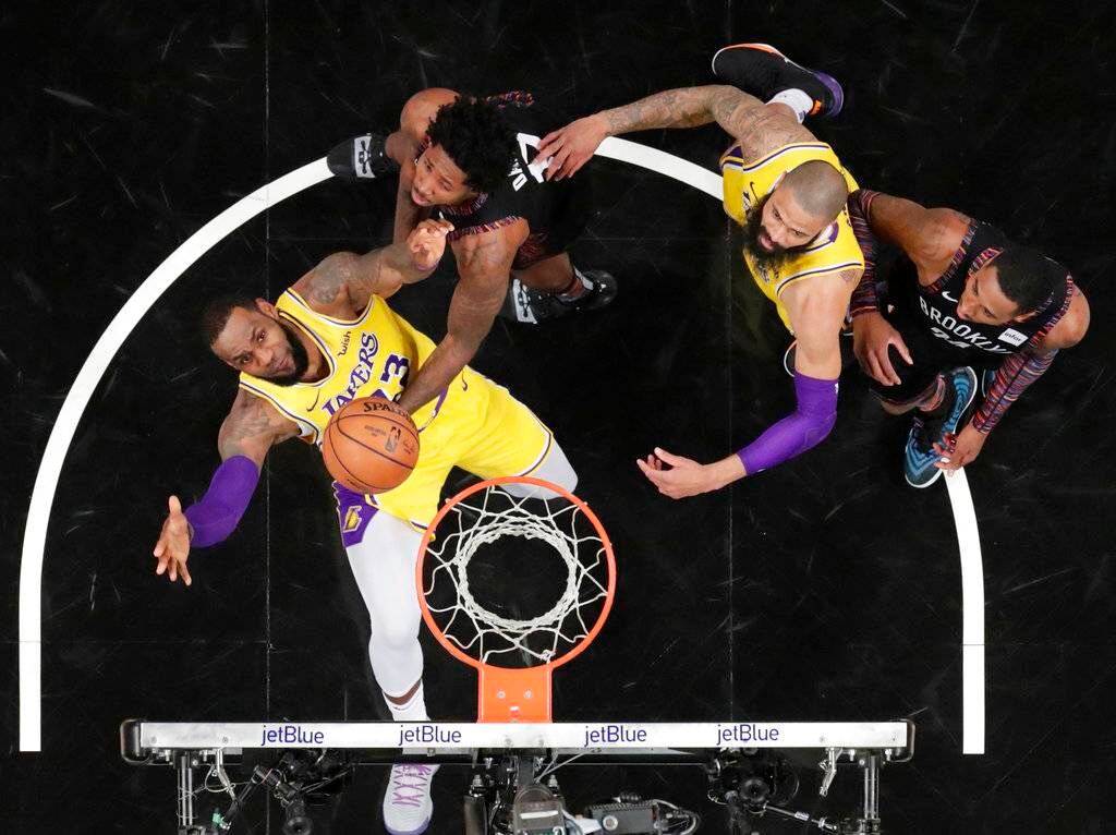 Los Nets ganaban 100-87 con siete minutos y medio por jugar antes que triples consecutivos de Kuzma y Ball cerraran la pizarra 100-93. Luego James anotó, bloqueó un tiro y y volvió a encestar, coronando una racha de 10-0 de los visitantes.