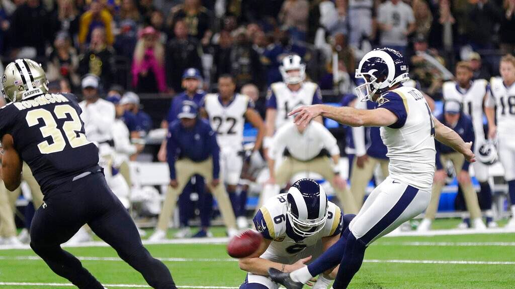 Greg Zuerlein conectó un gol de campo de 57 yardas en tiempo extra para darle a los Rams de Los Ángeles un boleto al Super Bowl con una victoria el domingo por 26-23 sobre los Saints de Nueva Orleáns, en el duelo por el campeonato de la Conferencia Nacional.