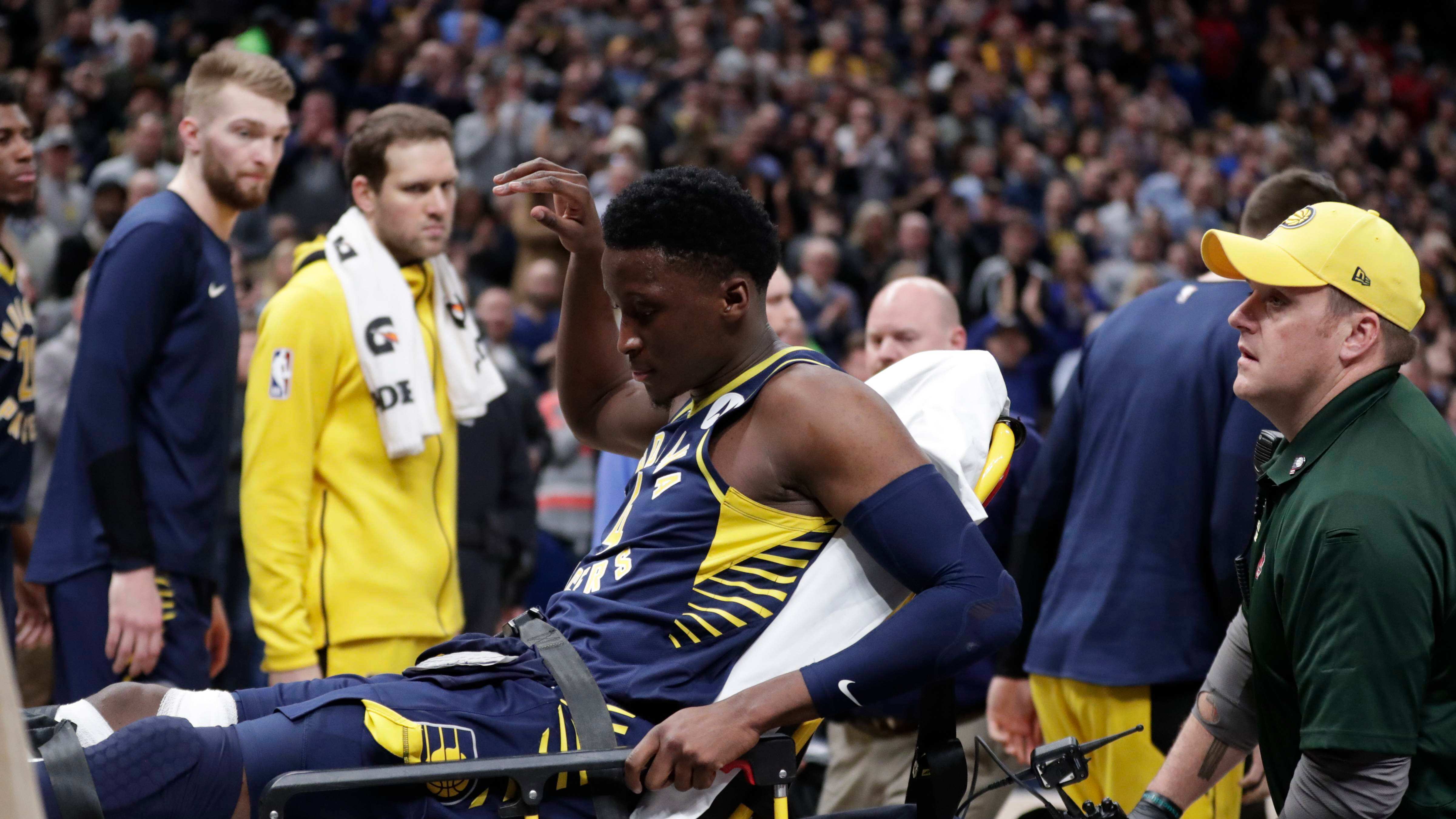 Oladipo se lesionó durante la victoria 110-106 ante Toronto la noche del miércoles y salió de la cancha en camilla a falta de 4:05 en el primer tiempo.