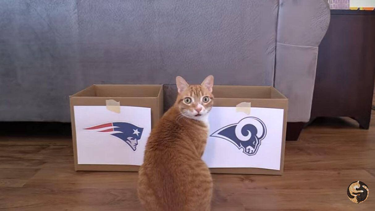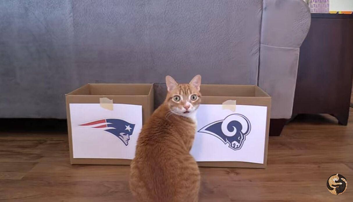 Un video de YouTube muestra a unos felinos que la tienen muy clara para anunciar quién ganará el partido entre Los Angeles Rams y New England Patriots en el estadio Mercedes Benz en Atlanta.