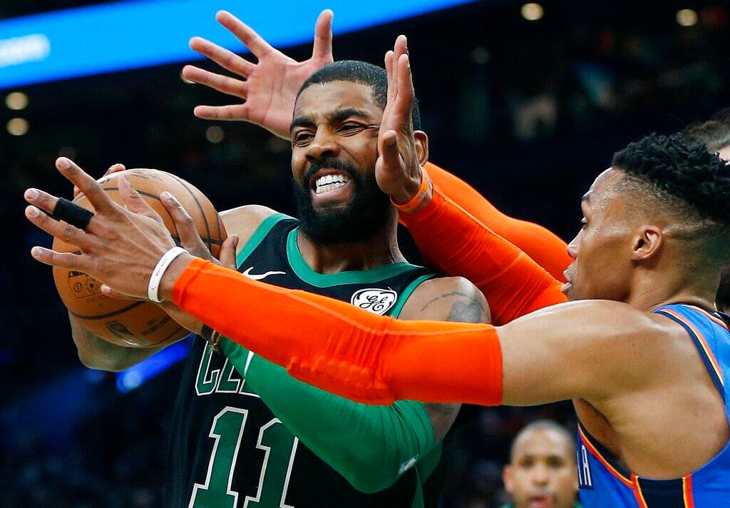Kyrie Irving anotó 30 puntos y repartió 11 asistencias, Marcus Morris añadió 19 puntos y los Celtics de Boston rompieron la racha de siete victorias del Thunder de Oklahoma City al vencerles el domingo por 134-129 en un entretenido partido entre equipos con aspiraciones de llegar lejos en los playoffs.