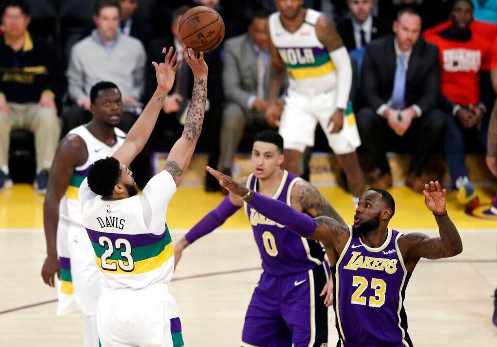 Pero Davis volvió a quedarse fuera en el último cuarto por una extraña limitación de minutos de los Pelicans, y James materializó dos enormes lanzamientos en los últimos 2:18 para salvaguardar el triunfo de los Lakers.