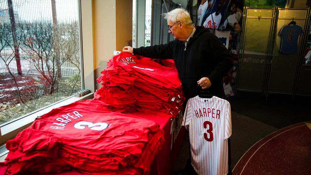 Fanatics dijo que la camiseta número 3 de Harper fue la más vendida de todos los tiempos en las primeras 24 horas de su salida a la venta. Aramark, que maneja la tienda de New Era de los Filis en el estadio, dijo que “el interés es elevado y las ventas rápidas” y nuevas olas de mercancía llegan diariamente. MLBShop.com ofrecía envíos gratis en Estados Unidos en todas las compras superiores a 39 dólares_ fácil para los fanáticos que estaban comprando la sudadera de prácticas de bateo de Harper, de 119 dólares o que pagan casi 45 dólares por la camiseta para niñitos.