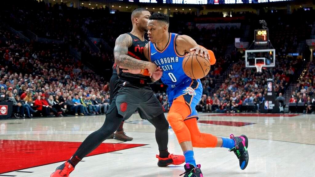 Russell Westbrook anotó 37 puntos y Paul George agregó 32 y 14 rebotes para los Thunder de Oklahoma City el jueves en una victoria 129-121 en tiempo extra sobre los Trail Blazers de Portland.
