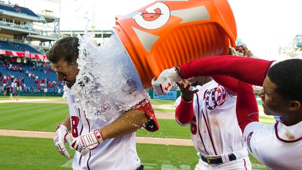 Fue el final apropiado para un juego de ida y vuelta. Washington estuvo abajo 2-0, repuntó a 6-2 gracias a un trío de cuadrangulares ante Aaron Nola, luego quedaron abajo 8-6 tras permitir cuatro carreras en la octava para luego empatar el marcador en la parte baja del inning.