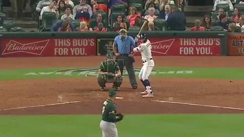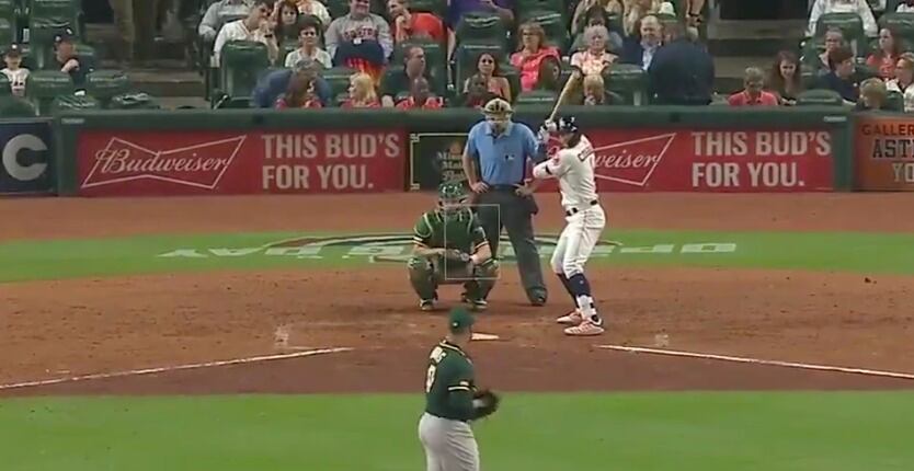 La página MLB compartió un video del momento en que el campocorto, quien regresa de sufrir unas lesiones, logró en la cuarta entrada poner en ventaja a los Astros 2-1 ante los Athletics de Oakland.