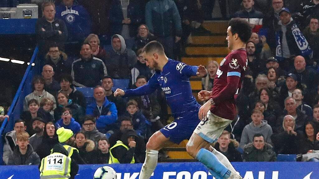 Una maniobra de Eden Hazard entre la defensa antes de anotar el lunes el primer gol del Chelsea no dejó exactamente sin palabras a los aficionados del West Ham.