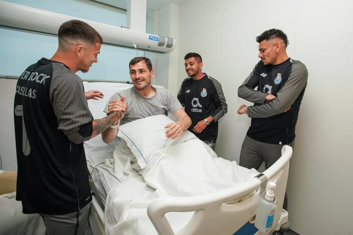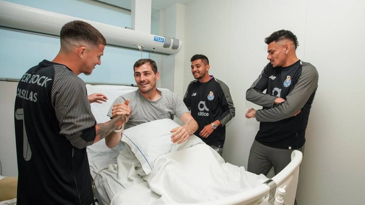 La plantilla al completo del Porto, acompañada del entrenador Sérgio Conceiçao y el director general Luís Gonçalves, visitó esta tarde al portero español Iker Casillas en el centro hospitalario CUF de la ciudad lusa en el que se recupera de un infarto agudo de miocardio.