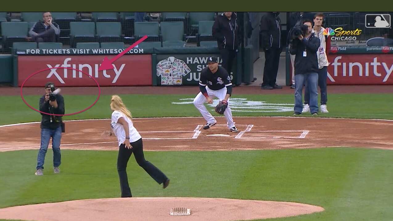 En la ceremonia inaugural del juego de anoche entre los Chicago White Sox y los Kansas City Royals de la MLB se vivió un momento muy chusco en el lanzamiento de la primera bola.