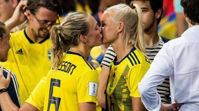 Cuando terminó el partido, Eriksson se acercó a las tribunas para reunirse con su pareja y se dieron un beso que generó varias reacciones entre los internautas, quienes en su mayoría celebraron la relación entre ambas deportistas nórdicas.